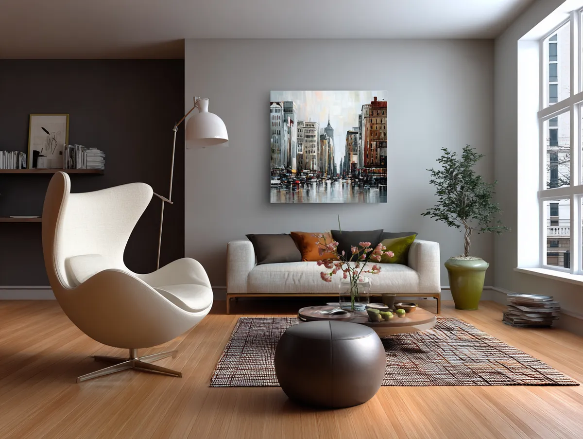Modern interiors are known for their clean lines and geometric shapes, combined with soft, organic curves. Paintings on canvas portraying the city hold dear their passion for the shapes of buildings and modern structures that make it a character.