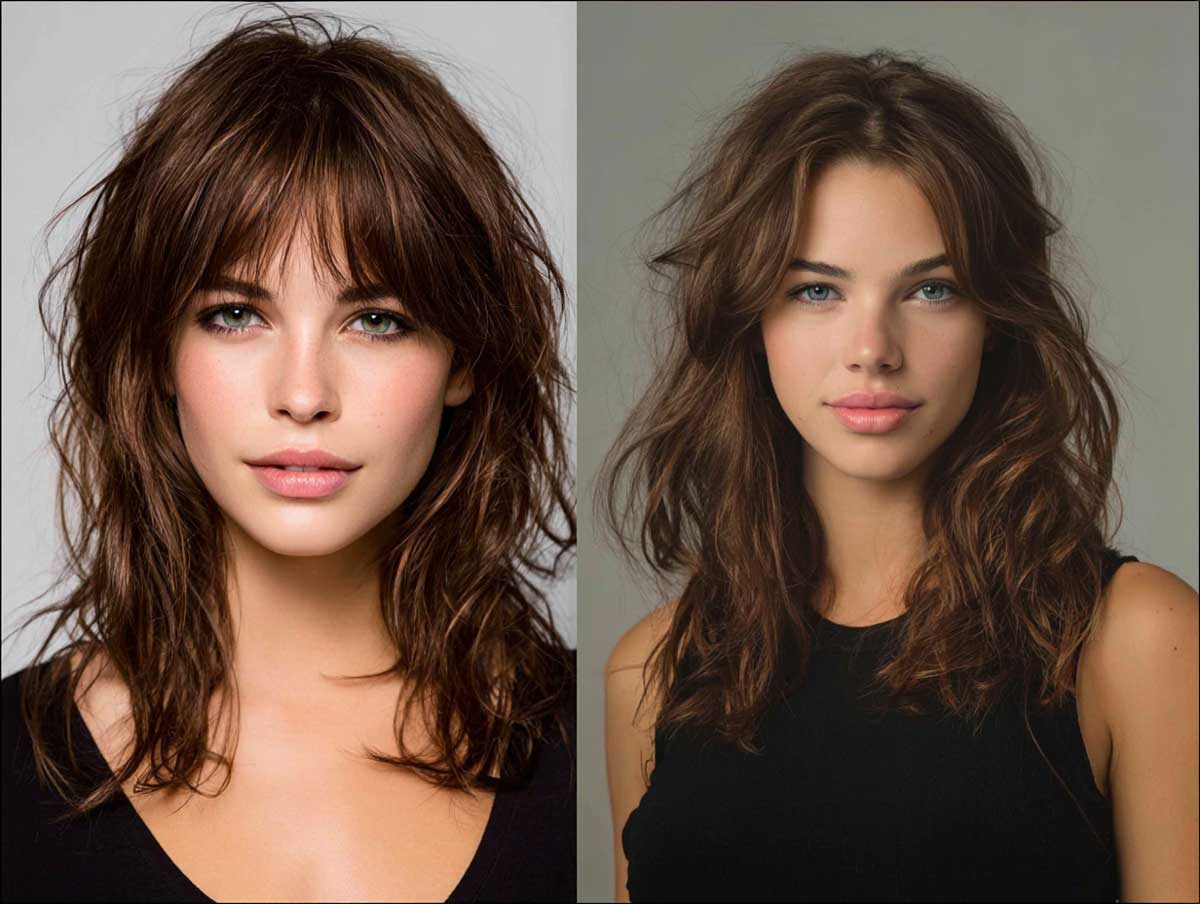 The layered bangs in this look aren’t just a design feature—they’re a clever tool for contouring. When cut slightly uneven and feathered into the sides, they add movement across the brow area, which gives a flattering contrast to the vertical length of the face. Because oval faces are already balanced, these choppy elements serve more to enhance than correct, allowing creativity without constraint.