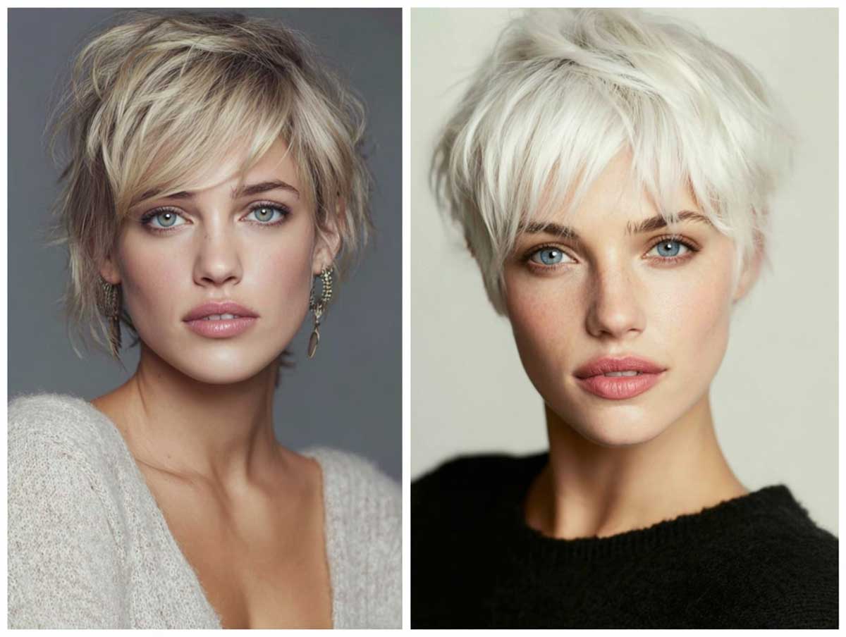 The haircut itself is sharply defined: cropped at the nape, with slightly longer top layers styled into jagged shapes that move forward around the face. These short choppy layers create volume exactly where it’s needed—on top and around the crown—without overwhelming the lower half of the face. For oval faces, this upward lift enhances natural proportions without exaggerating width or length.