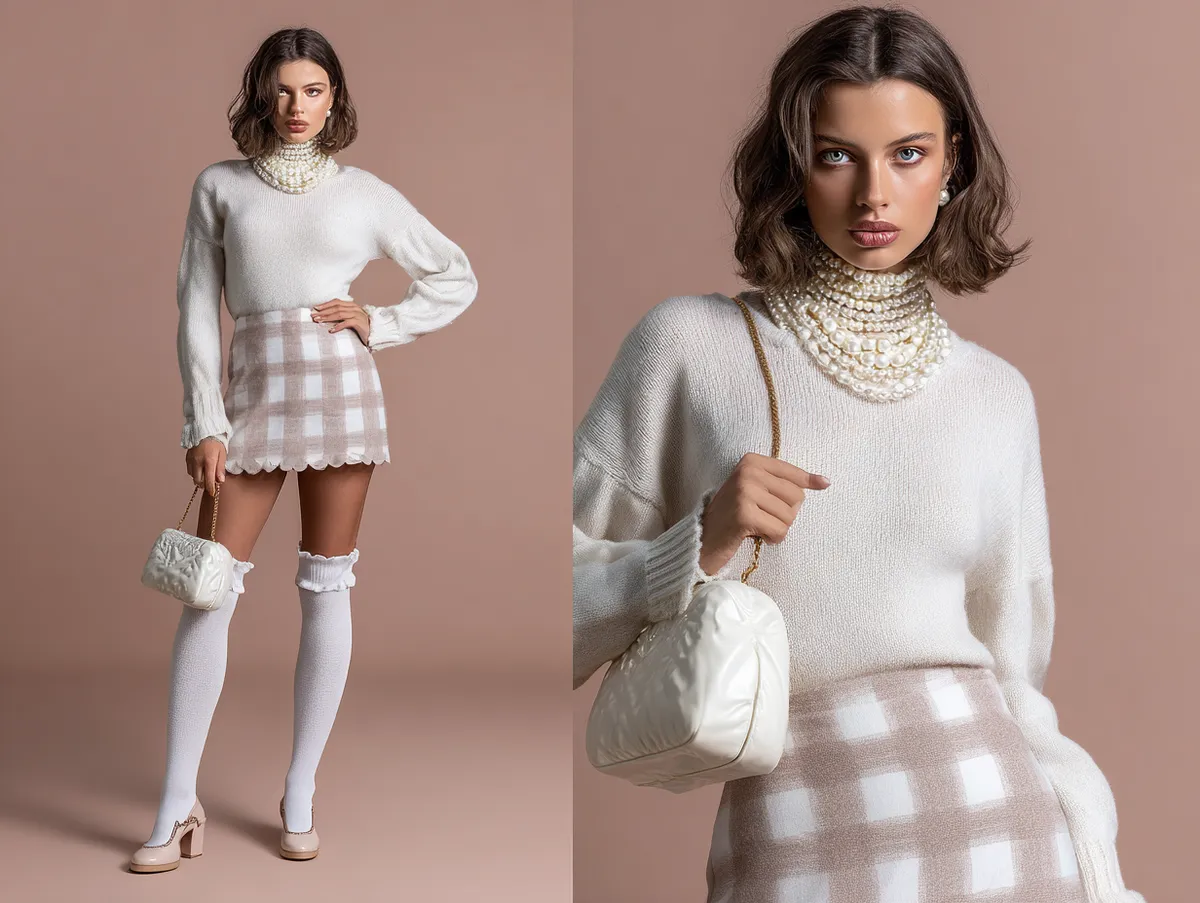 Accessories make a difference. Pearl earrings elevate the outfit, especially with hairstyles like high ponytails, sleek buns, or soft waves. Everyday jewelry creates gentle sparkle without overwhelming the look. Clueless outfit ideas often combine sweetness and luxury, and pearls offer exactly that mood. Some people choose oversized sweaters for warmth and pair them with shorter skirts, creating interesting proportions. Others prefer fitted knits that emphasize a polished silhouette. Both versions photograph beautifully, which is why stylists love them for catalog layouts and brand campaigns.