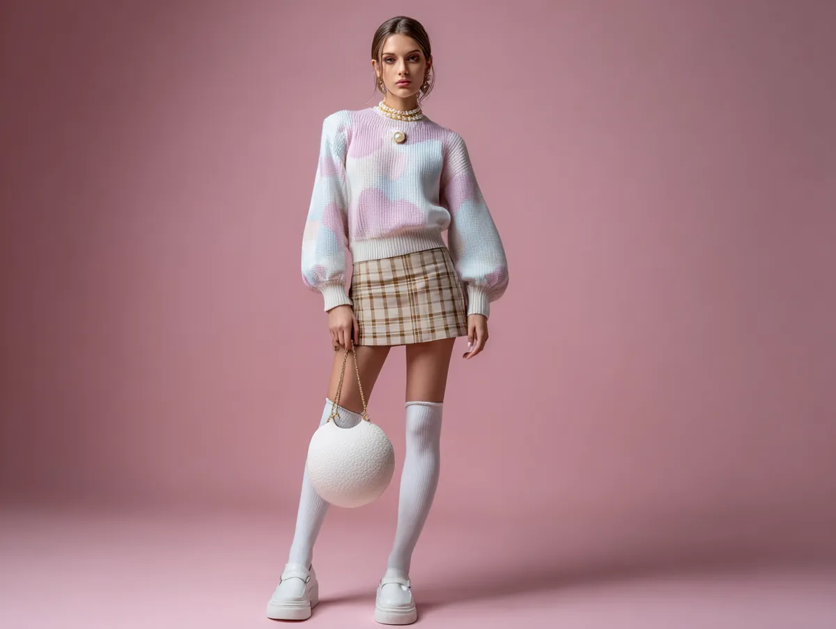 Fashion keeps recycling iconic aesthetics, and the playful schoolgirl vibe from the 90s continues to influence designers and everyday wardrobes. Bright colors, mini skirts, shiny fabrics, layered knits, tall socks, and bold accessories feel timeless because they are fun, a little theatrical, and easy to personalize. The playful styling is what makes clueless outfit ideas relevant for students, creatives, travelers, and anyone who enjoys unapologetically cute clothing. Modern street style twists this look with oversized jackets, chunky boots, tiny bags, and photo-ready details that feel glam yet effortless. Below are three outfits imagined for catalog-quality presentations, showing how this trend adapts to modern fashion culture.