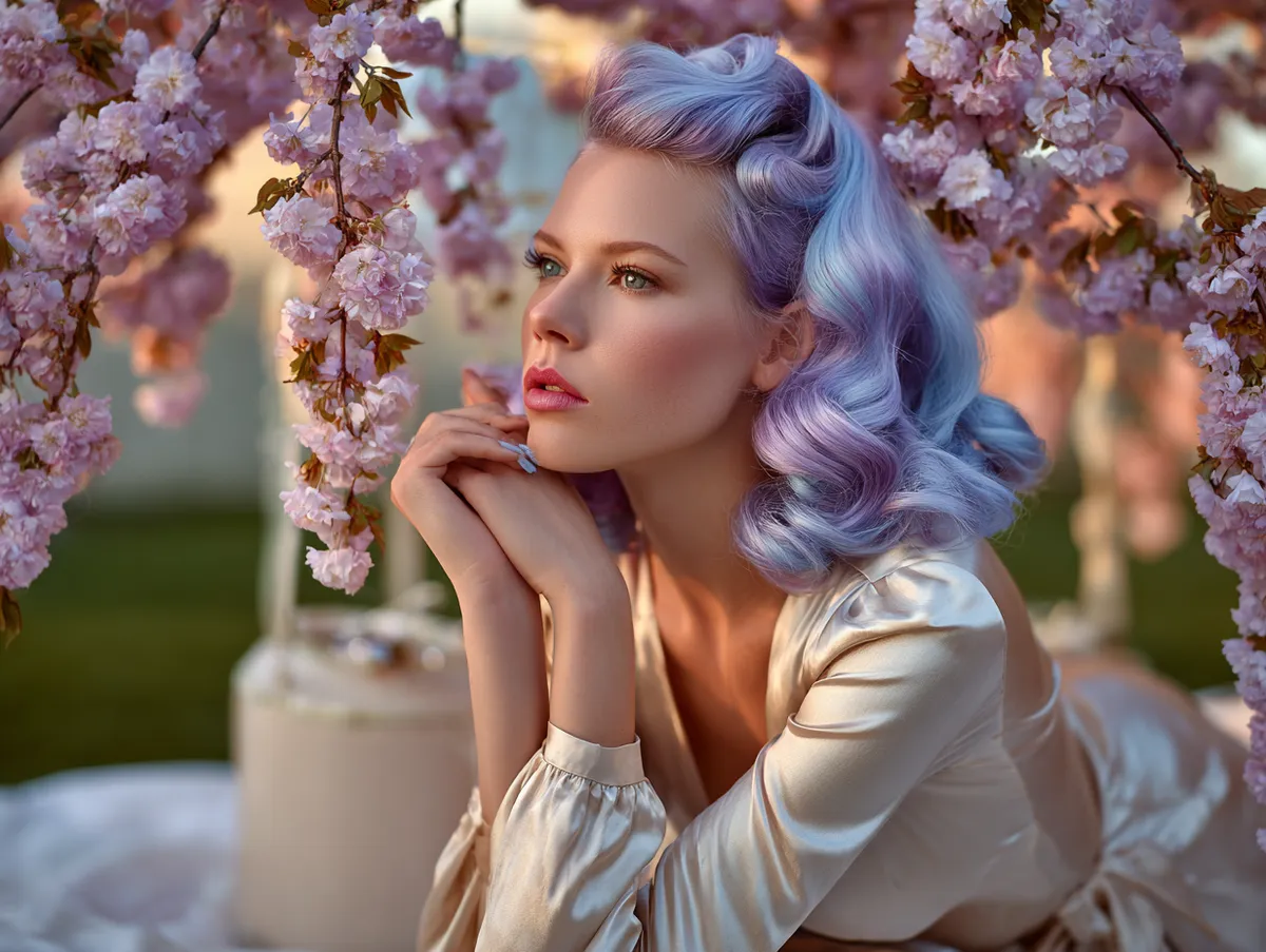Stylists use subtle layering of tones to create multidimensional shimmer that responds to soft lighting. Lavender transitions into icy blue, sometimes kissed by silver reflections that mimic twilight skies. Under warm sunset tones, the hair glows gently, enhancing the atmosphere of intimacy and elegance.