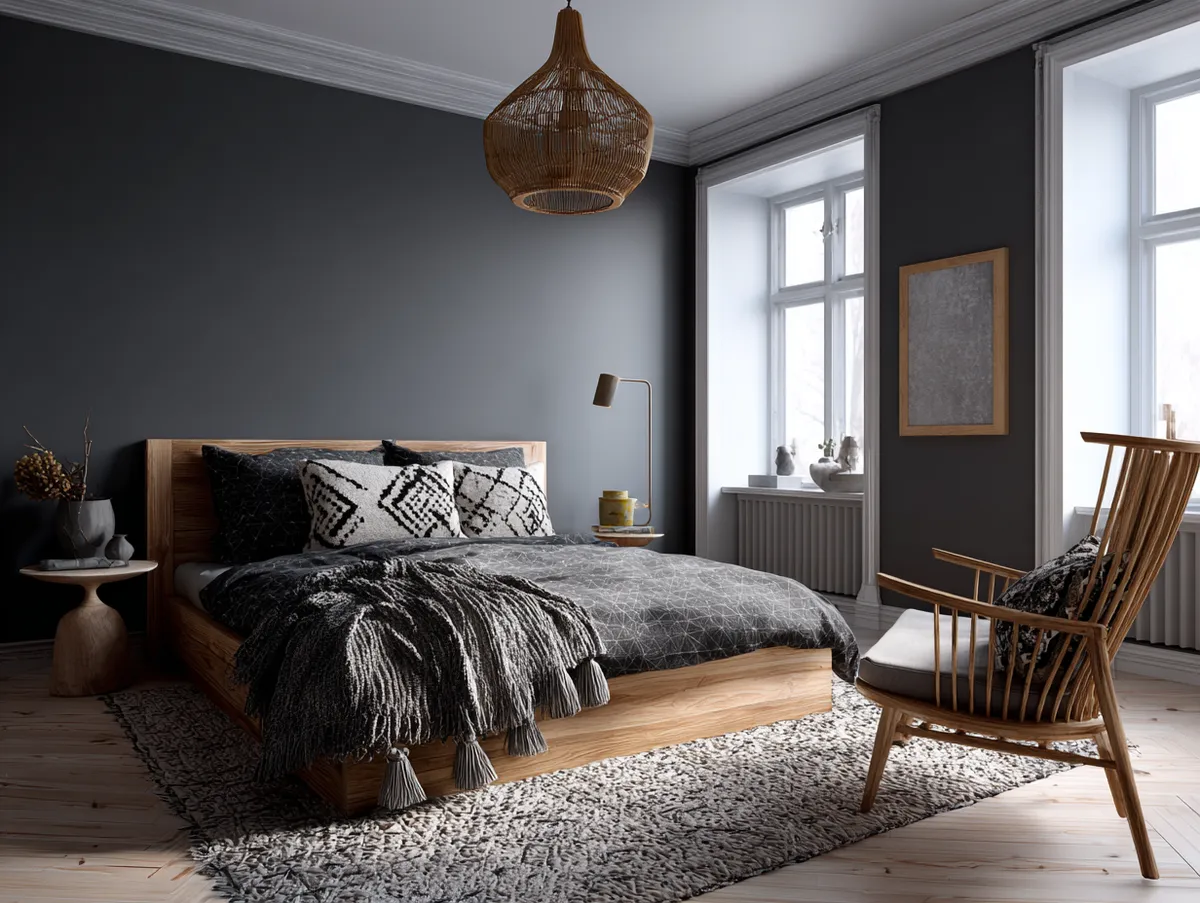 Next, consider the furniture. Scandinavian design is characterized by its use of simple, functional furniture with clean lines. Choose furniture in dark tones to complement the color palette and create a cohesive look. For example, a dark wood bed frame, a charcoal gray dresser, and navy blue nightstands would work well in a dark Scandinavian bedroom. Additionally, consider the scale of the furniture. A large, dark bed frame can make a statement and anchor the room, while smaller, lighter pieces can help to balance the space and create a sense of airiness.