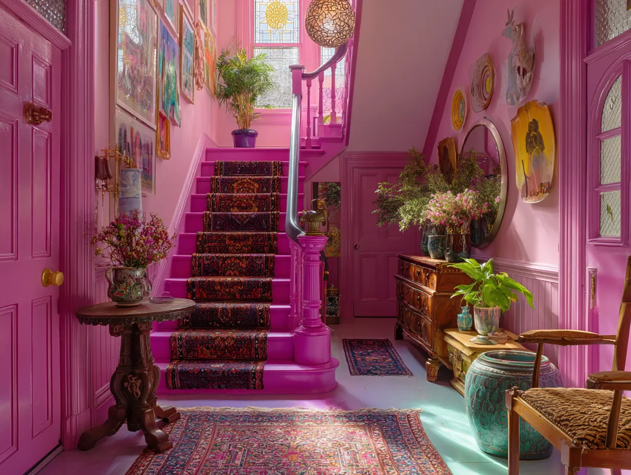The entryway of a home carries an immense architectural and psychological responsibility. It is the absolute first physical interaction anyone has with your private environment, serving as the ultimate threshold between the chaotic outside world and your curated personal sanctuary. For decades, entryways have been treated as mere pass-through zones, painted in safe, welcoming whites and outfitted with practical, invisible furniture. However, for those who embrace a bolder lifestyle, the foyer is the perfect opportunity to establish a dramatic, unforgettable narrative from the very second the front door swings open. Designing an entryway rooted in extreme color saturation immediately communicates a sense of confidence, creativity, and profound joy. By utilizing an aggressively vibrant palette right at the threshold, you instantly reset the emotional frequency of anyone entering the home, preparing them for an interior experience that is anything but ordinary.