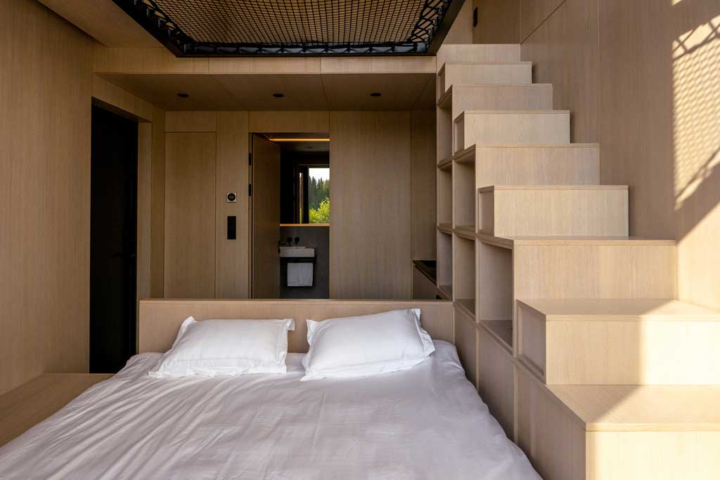 The benefits of prefabrication extend beyond just construction. The treehouse boasts of well-insulated accommodation units with triple-glazed low-E glazing. This ensures that the interiors remain comfortable throughout the year, be it the biting Estonian winters or the mild summers.