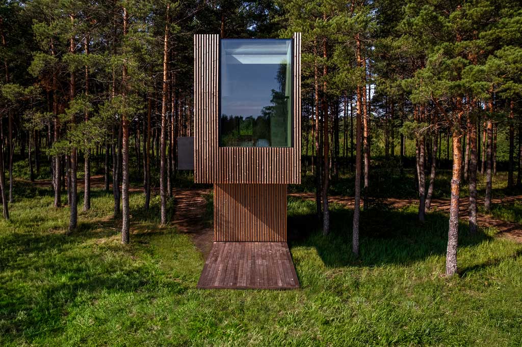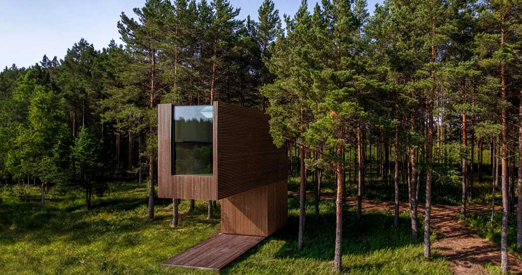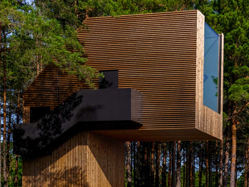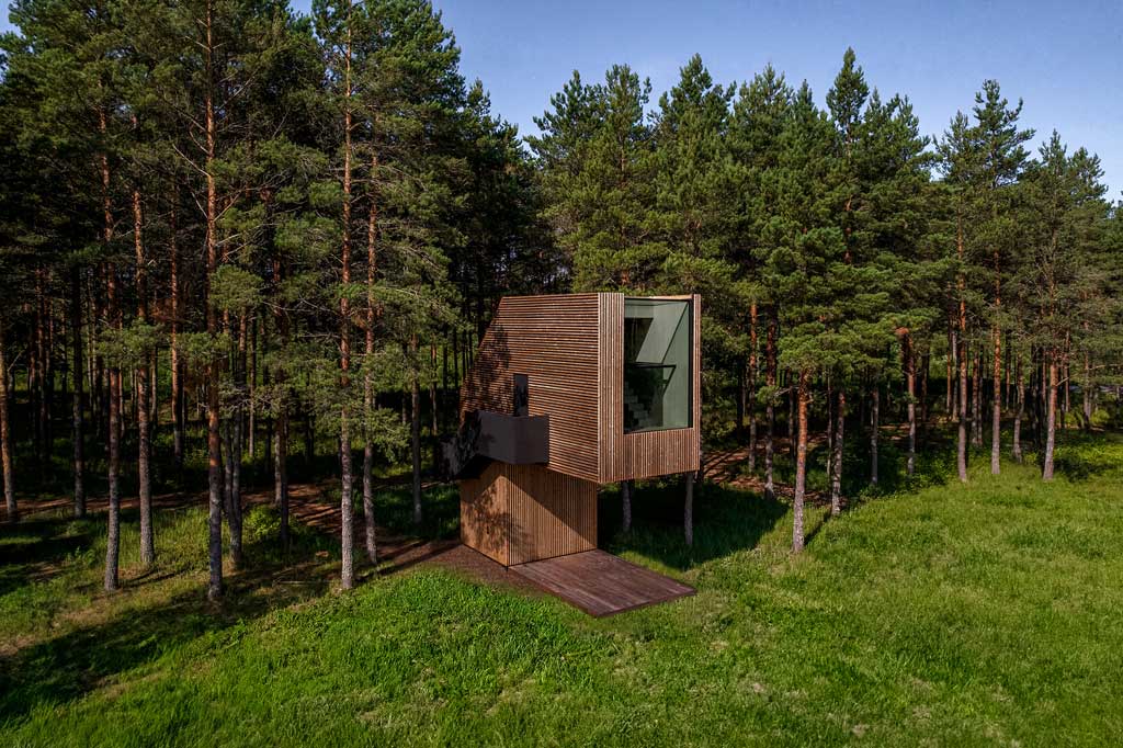 In the heart of the Estonian wilderness, where the vast expanse of nature stretches as far as the eye can see, stands a marvel of modern architecture. An elevated, prefabricated treehouse that not only pays homage to the beauty of its surroundings but also showcases the brilliance of contemporary design and the innovative use of building materials.
