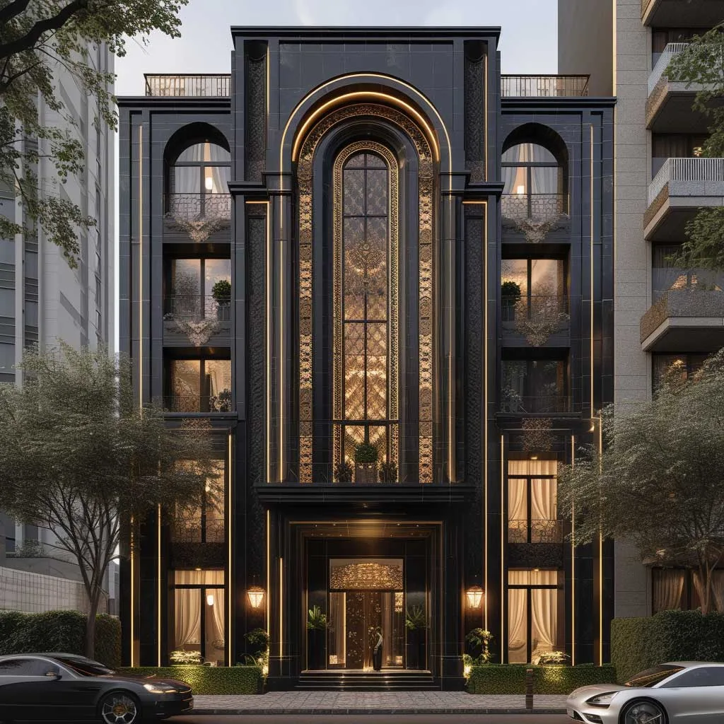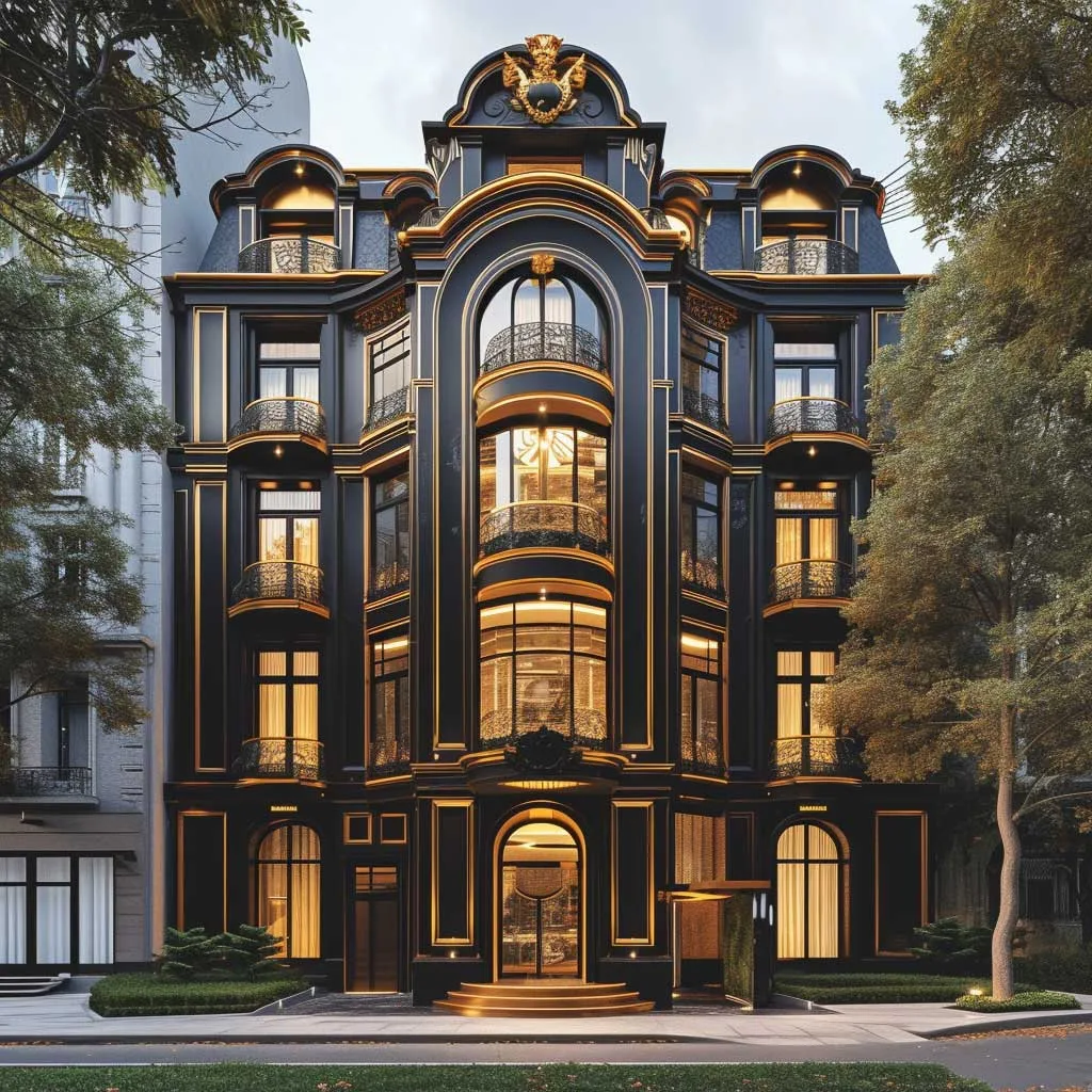 Bold and Beautiful Ebony Facade with Gold Details