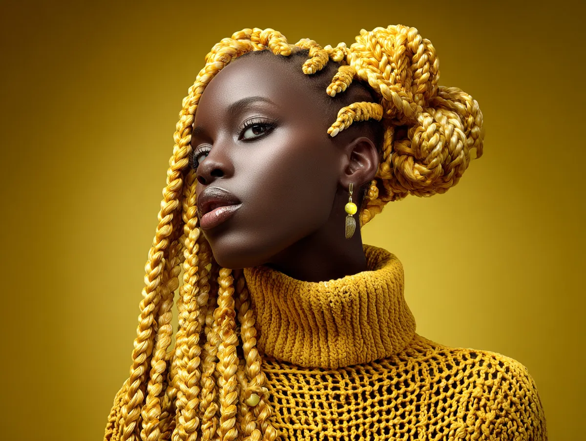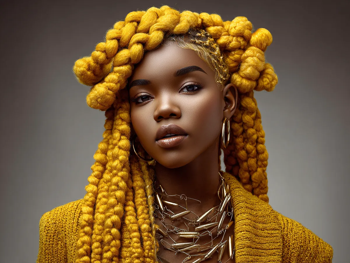 Twist hairstyles for natural hair with chunky sections have become popular on social media because they command attention without trying too hard. Golden yellow makes the style vivid, while the texture of the twists keeps everything grounded in curl-friendly beauty. This combination of shape, color, symmetry, and volume turns a protective method into a stunning visual signature.