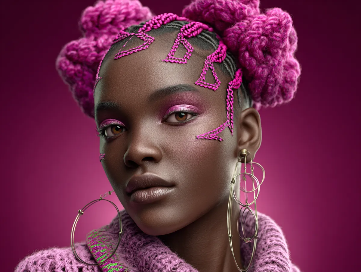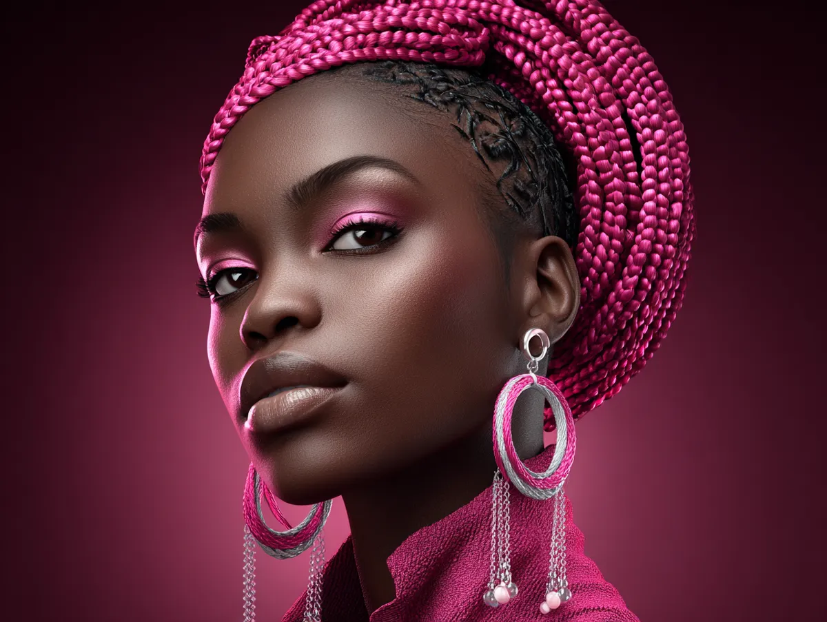 Zigzag parting adds dramatic impact to textured strands. The lines turn into geometric shapes that create an instant fashion statement. People who love individuality choose this technique because it looks exciting from the front, side, and back. Twist hairstyles for natural hair look even more dimensional when the base includes sharp angles. Each triangular section forms a neat foundation, making the twists appear sleek with a structured finish. The neon pink color in this version brings modern flair and highlights the pattern even more, making it perfect for festivals, creative events, or fashion photography.