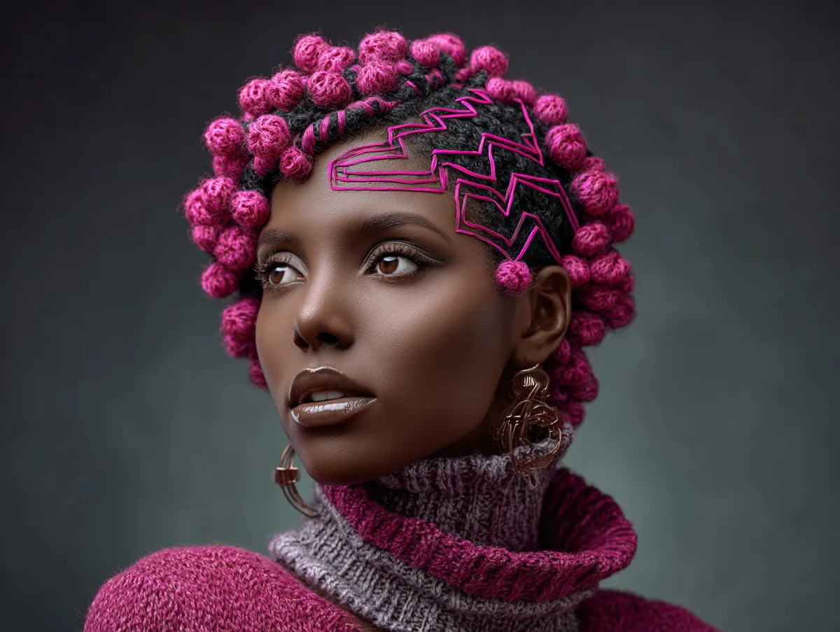 Twist hairstyles for natural hair appeal to those who love styling options. The zigzag base gives obvious structure when worn loose, but also translates well into ponytails, buns, and half up looks. Someone can pull all twists up to show the pattern underneath or gather only a portion for an elegant crown style. Even a simple low bun appears elevated because the zigzag shapes remain visible where the parts begin. A bright color such as neon pink enhances the futuristic vibe of this look. The texture of the curls remains visible under the twist, preventing the bold shade from feeling overwhelming or harsh.