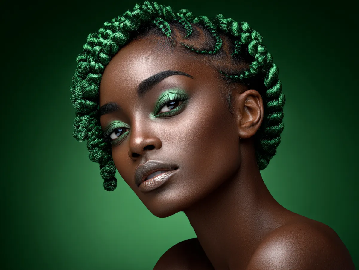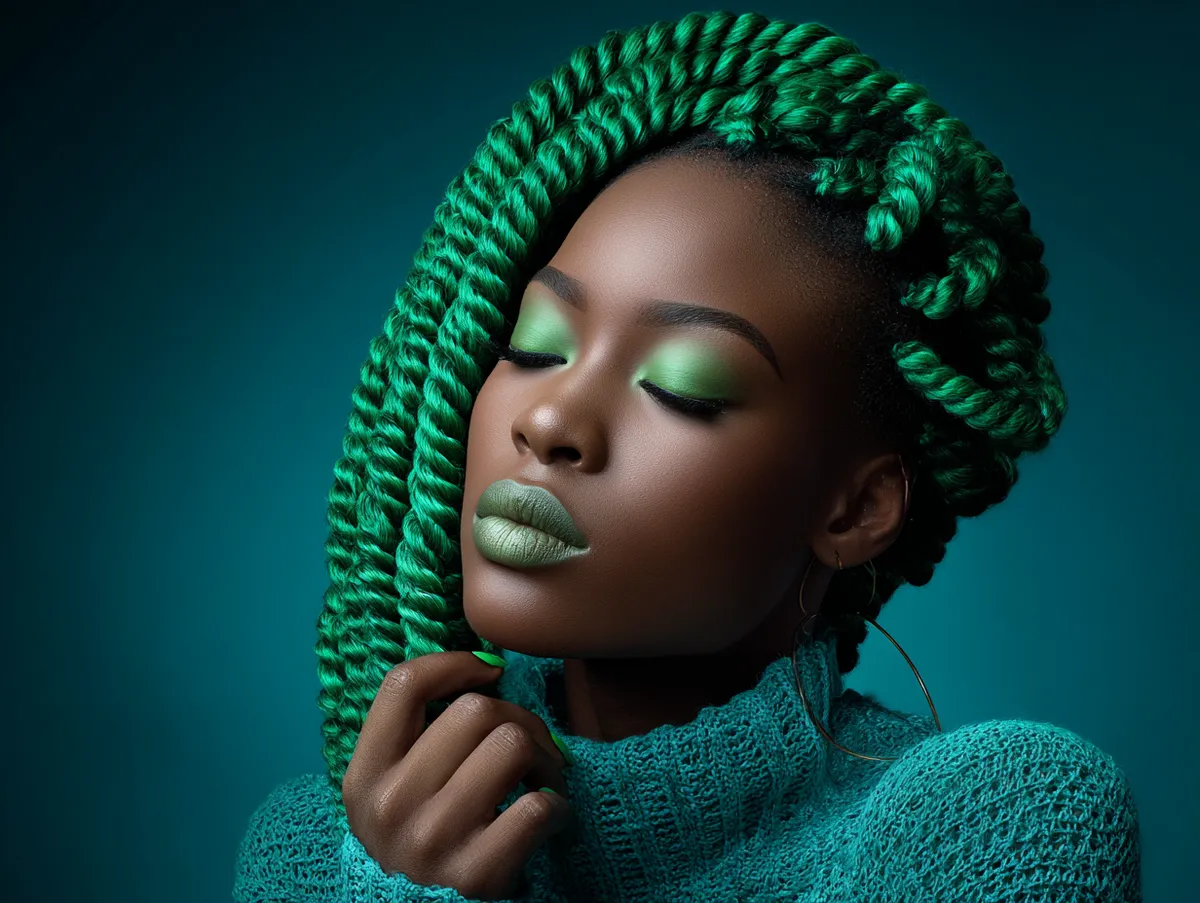Curved parting offers styling comfort as well. Straight lines sometimes place tension on one direction of the scalp, but curved sections spread tension more gently. This makes the look comfortable, especially for those with sensitive roots. This style pairs well with bold hair color. Emerald green twists, for example, create a fashionable contrast between the rich hue and the natural coil texture. Women who love colorful looks and want something photo ready choose bright tones because the parting shapes stand out even more. The hairstyle adapts to various lengths. Updo versions are possible by pinning sections at the crown or creating a half up style. Even a simple side sweep transforms the visual effect because the curved lines guide the eye.
