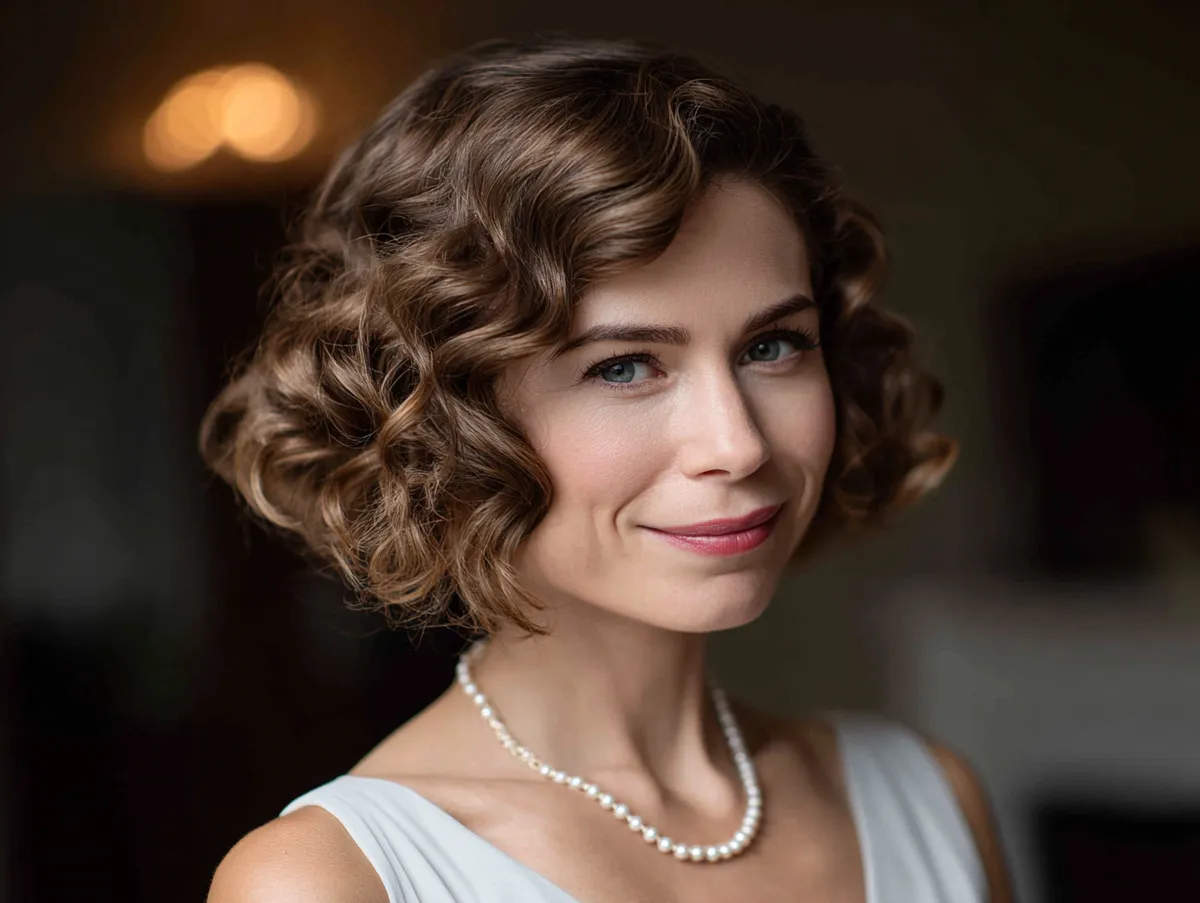 Graduated bob haircut with soft curls for wedding guests