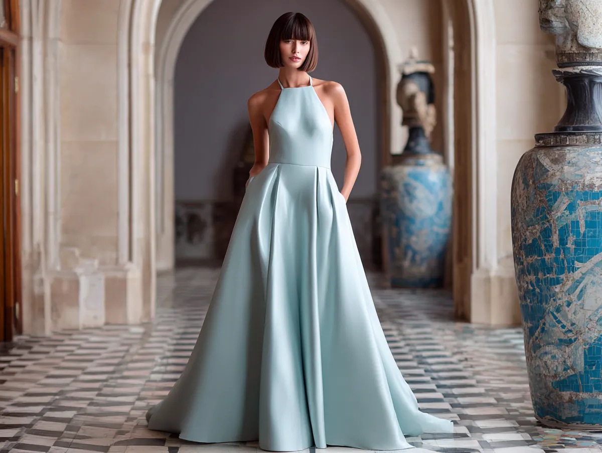 This sleek version works especially well for bridesmaids because it doesn’t compete with the wedding gown or the bride’s chosen hairstyle. Instead, it complements group photos with clean lines and balanced proportions. Matching pastel dresses paired with sleek graduated bob haircuts form a harmonious look that enhances the elegance of the event.