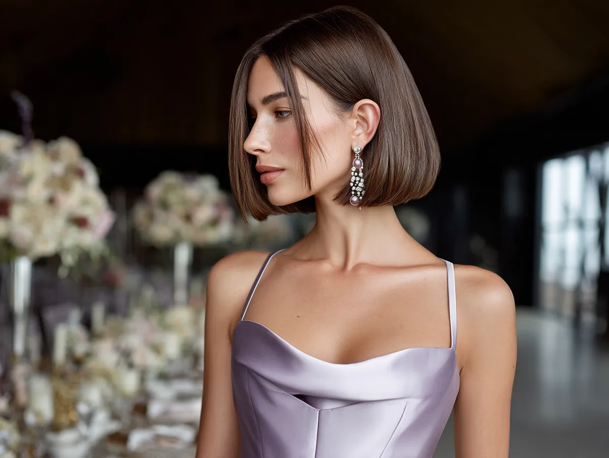 Graduated bob haircut with sleek finish for bridesmaids