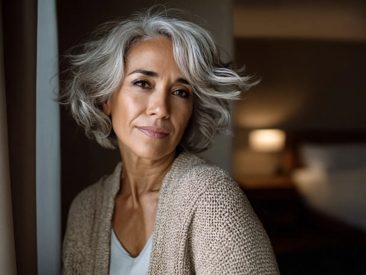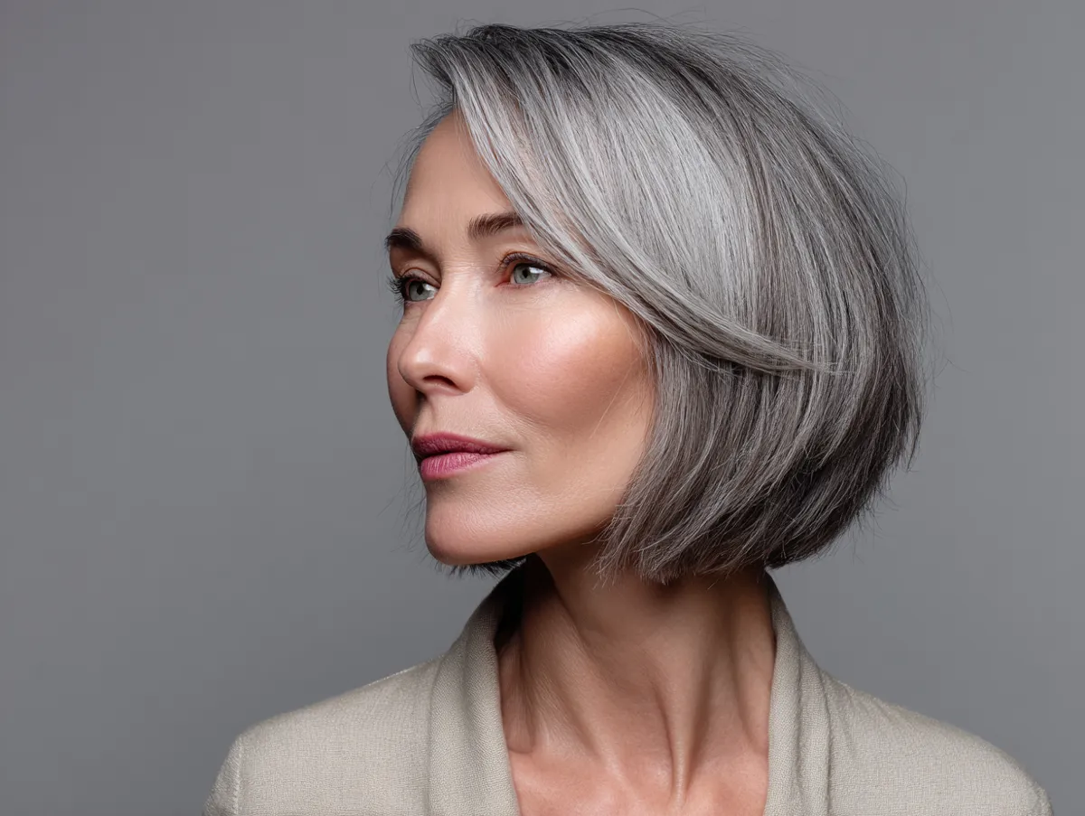 Texture enhances the natural movement of the hair. Using a small amount of lightweight serum or cream adds a healthy sheen without heaviness. The color gray—often viewed as neutral—actually amplifies light reflection, giving a soft halo effect that complements the skin beautifully. Each glance in the mirror becomes a reminder that effortless can still be exquisite.