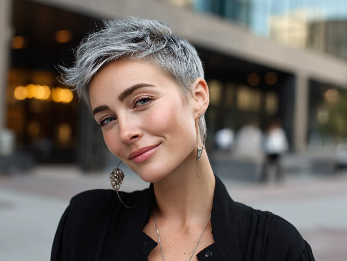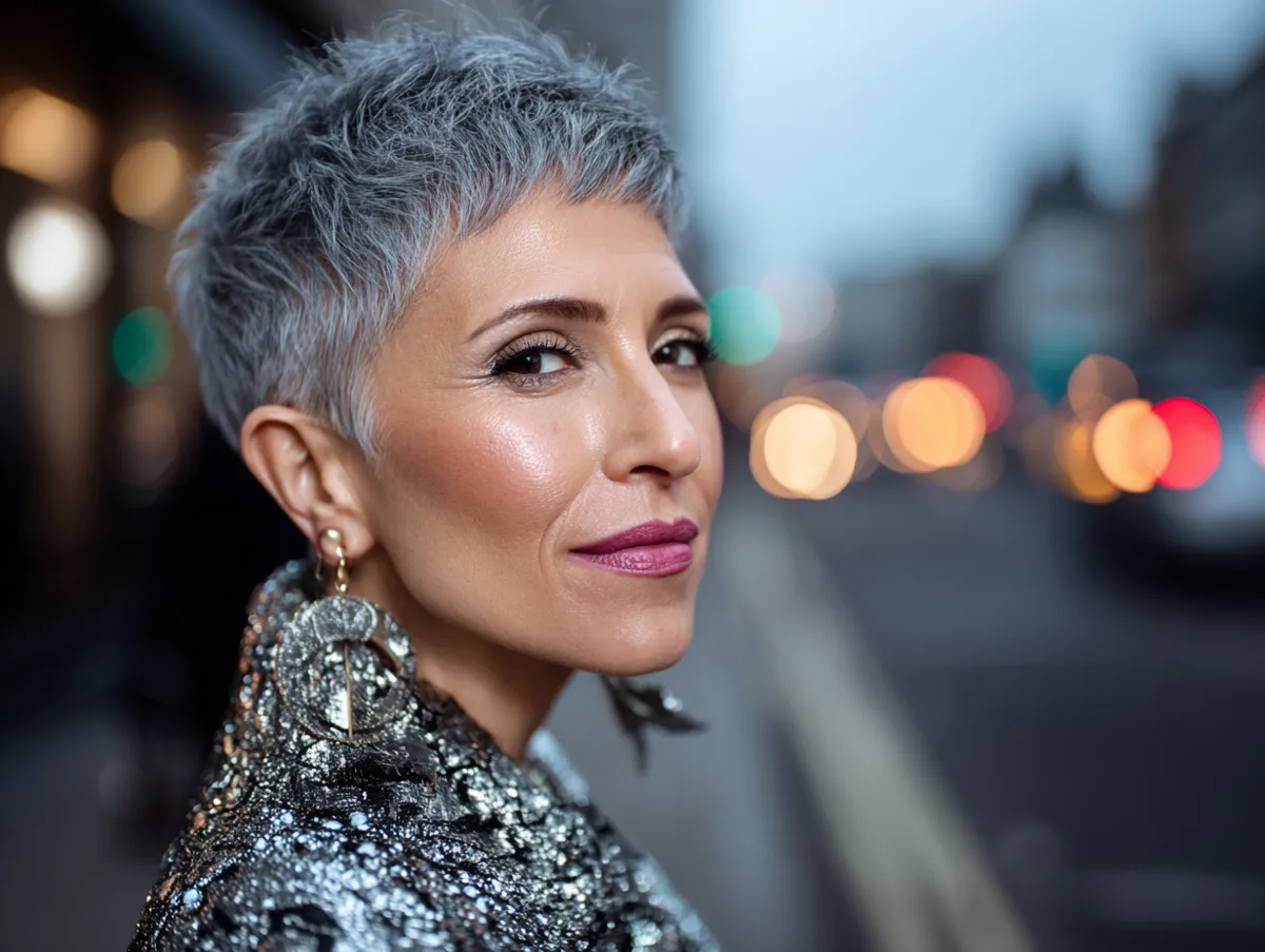 Urban lighting complements gray short hair styles beautifully. Whether under the glow of café windows, office fluorescents, or city streetlights, silver tones catch and reflect light in mesmerizing ways. The Urban Pixie Glow harnesses that effect perfectly. Instead of fighting against aging or texture, it turns both into assets. Natural gray strands shimmer like metallic threads, creating a striking contrast with modern clothing and accessories.