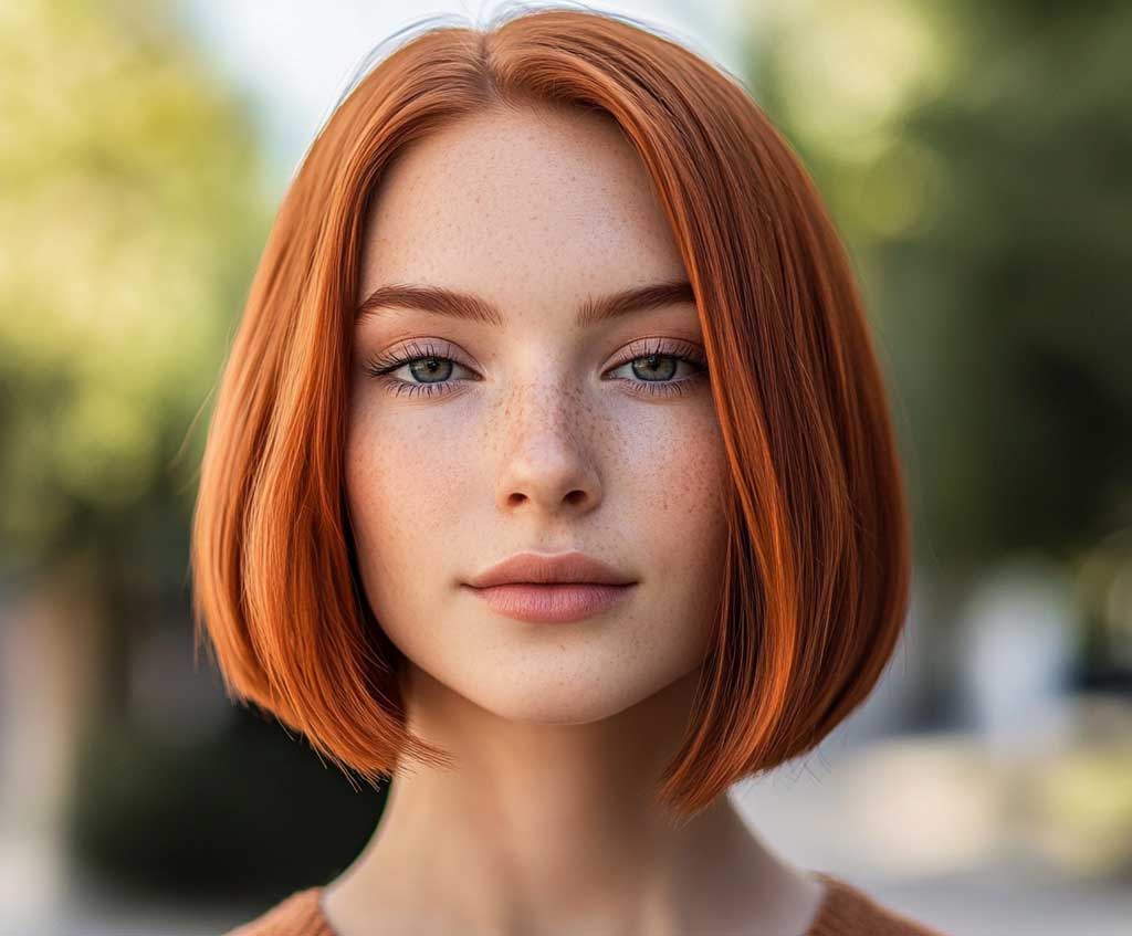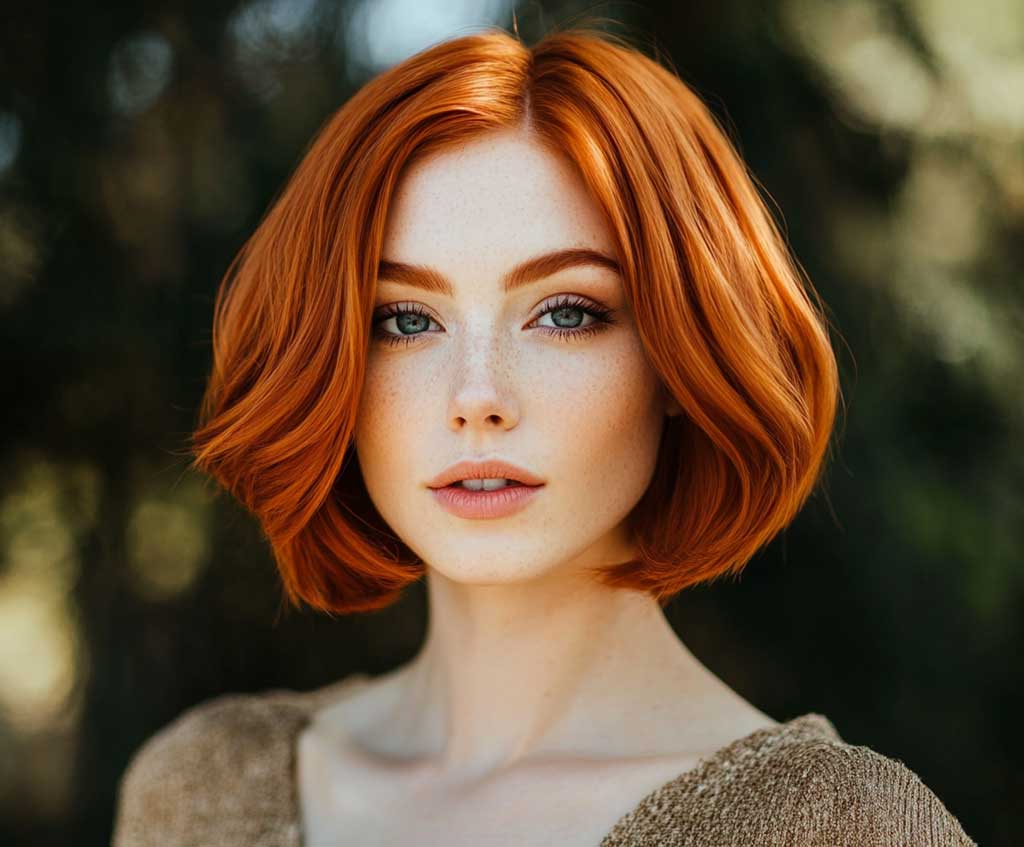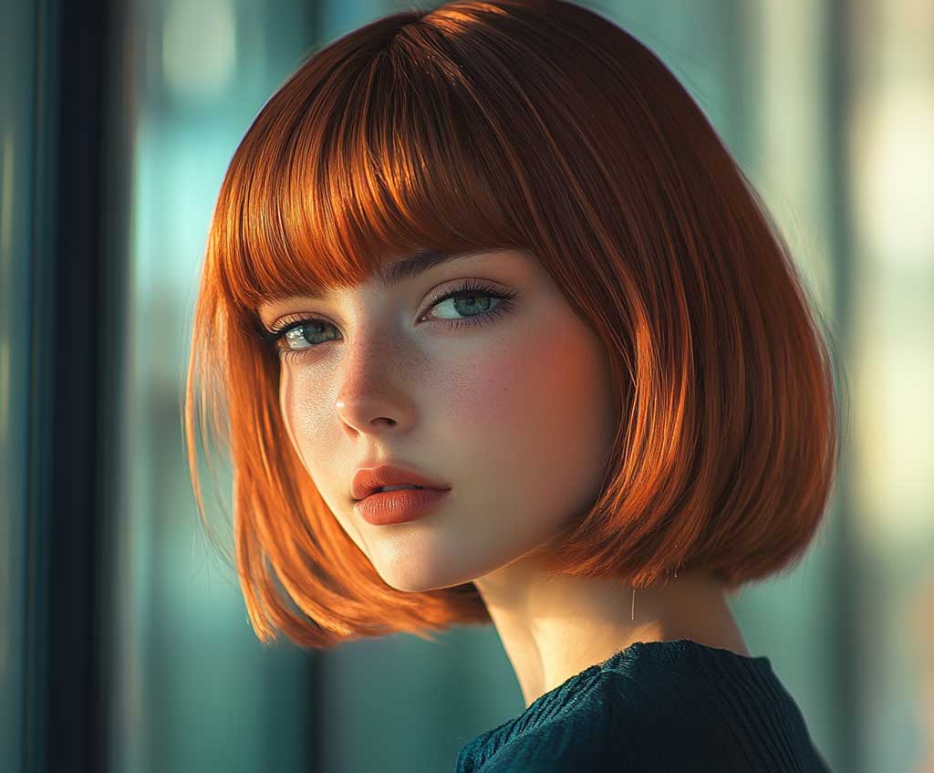 A vibrant copper blunt cut bob brings energy and character to any outfit. This color radiates warmth and catches the light beautifully, making it a fantastic choice for those looking to add a bold touch to their look. The blunt cut bob’s shape provides a structured, modern silhouette, while the added volume introduces movement and texture that complements the color’s vibrancy. With a vibrant copper bob, even the simplest outfit can look elevated, as this hairstyle becomes a statement piece in itself.