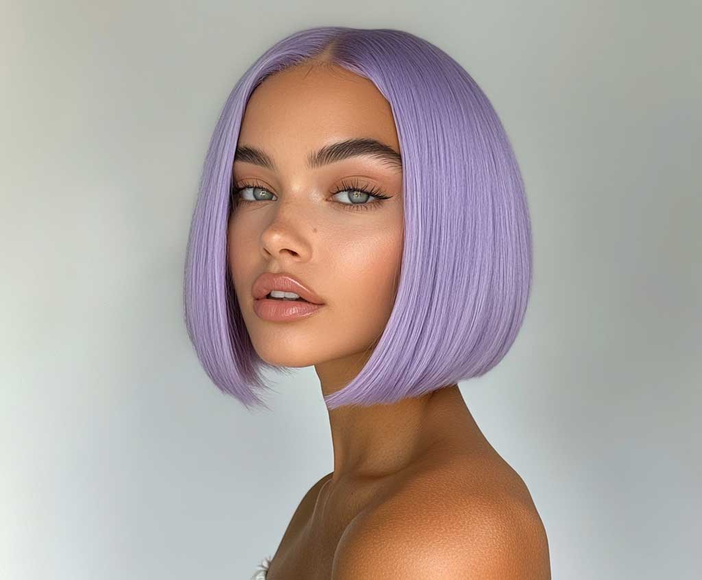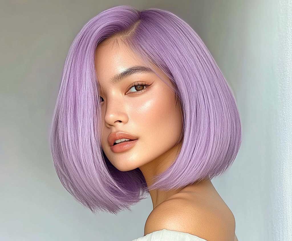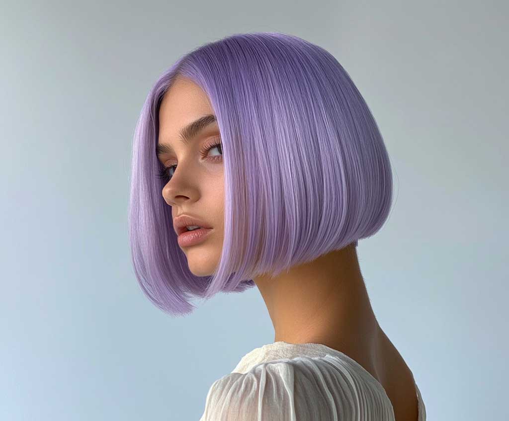 Soft Lavender Blunt Cut Bob with Sleek Finish