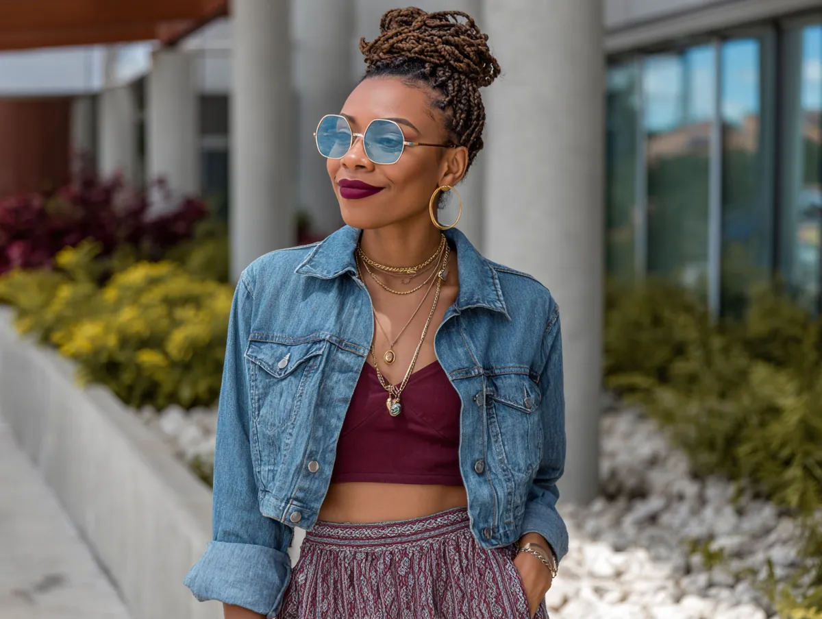 The denim jacket is a timeless piece that adds an instant cool factor to any outfit. Its versatility makes it an essential wardrobe staple, especially when paired with a crop top. Whether you’re heading out for a day of shopping, meeting friends for lunch, or just enjoying a leisurely walk, this outfit provides the perfect balance of comfort and style.