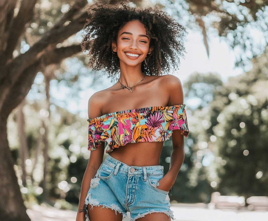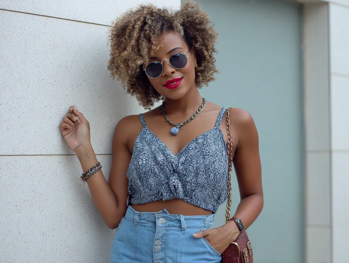 This combination is all about keeping things light and comfortable. Denim shorts are breathable and easy to move in, making them perfect for a day spent outdoors. The crop top keeps you cool while allowing you to showcase a bit of midriff, adding to the carefree vibe of the outfit.