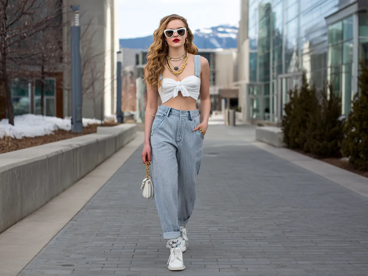 High-waisted jeans have made a significant comeback in recent years, and when paired with a simple white crop top, they create a look that is both timeless and trendy. This combination is perfect for everyday wear, capturing the essence of “clueless outfit ideas” by blending 90s nostalgia with modern fashion sensibilities.