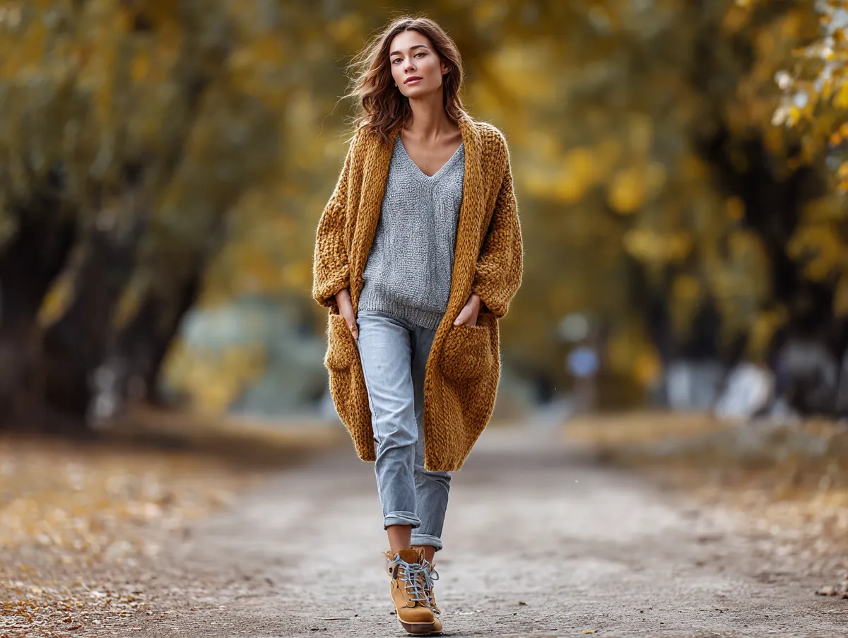 Cardigans in neutral shades like beige, gray, or taupe make perfect companions for denim, allowing accessories to shine. Think of a delicate pendant necklace, a structured handbag, or a beanie for colder days. Mixing textures—such as ribbed cardigans, distressed denim, and smooth leather accessories—adds depth and interest to casual ensembles.
