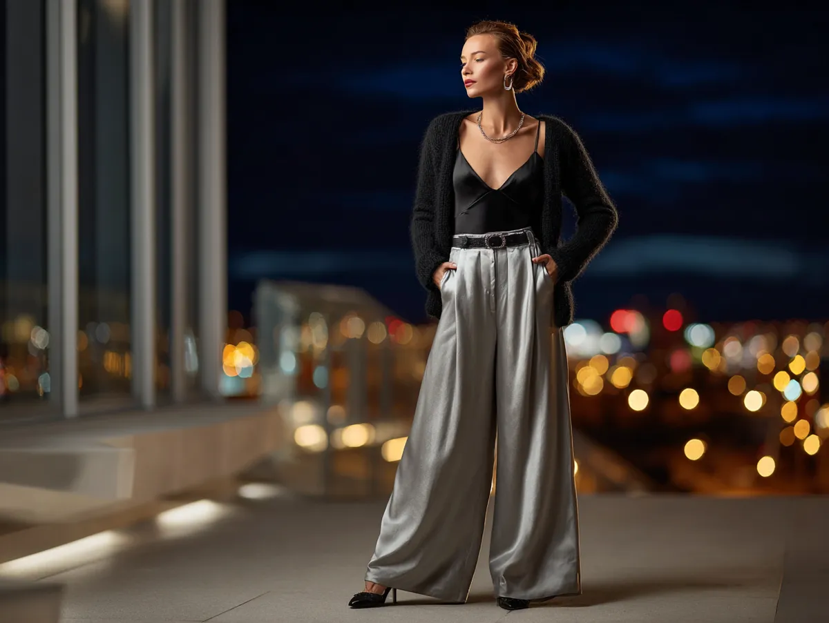 For color palettes, deep jewel tones and timeless neutrals work wonders. Think burgundy, midnight blue, or black paired with shimmering gold accessories. A simple clutch and heeled boots or strappy sandals complete the transformation from daywear to evening-ready attire.