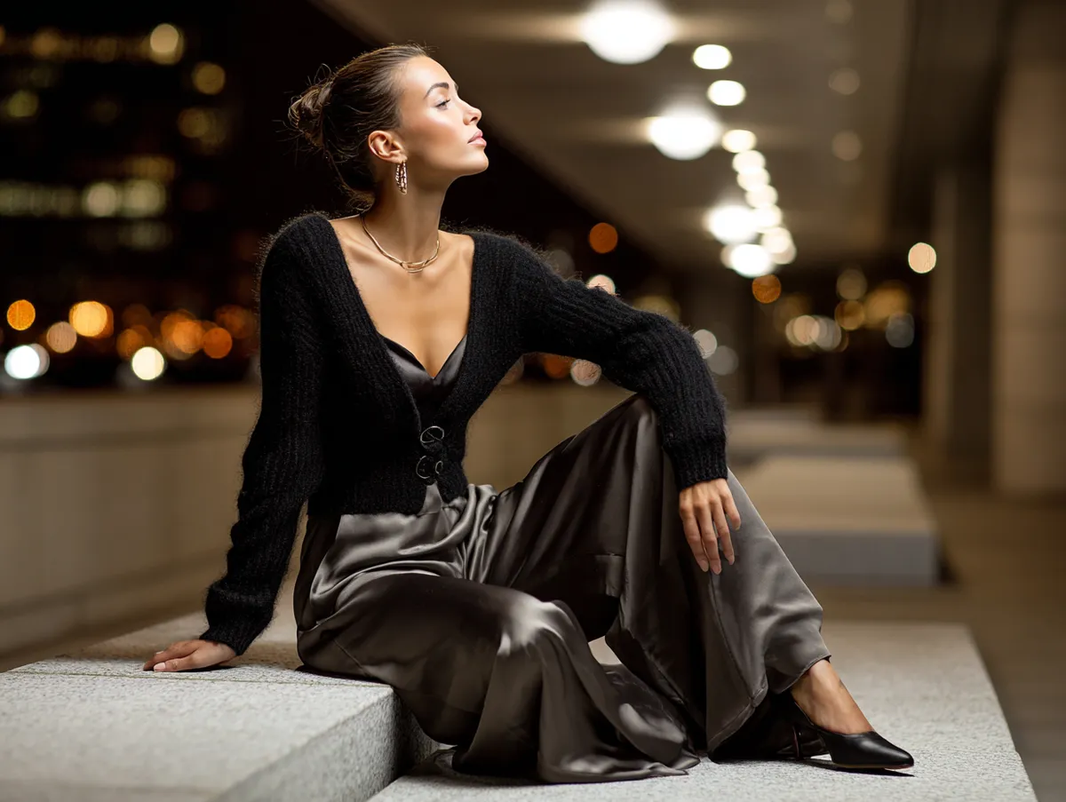 While the cardigan may be known for daytime comfort, it also possesses untapped potential for evening sophistication. When styled correctly, it becomes an unexpected hero for night outings, dinners, or low-key events. The most refined cardigan outfit ideas merge the tactile warmth of knitwear with the luxe allure of evening fabrics.