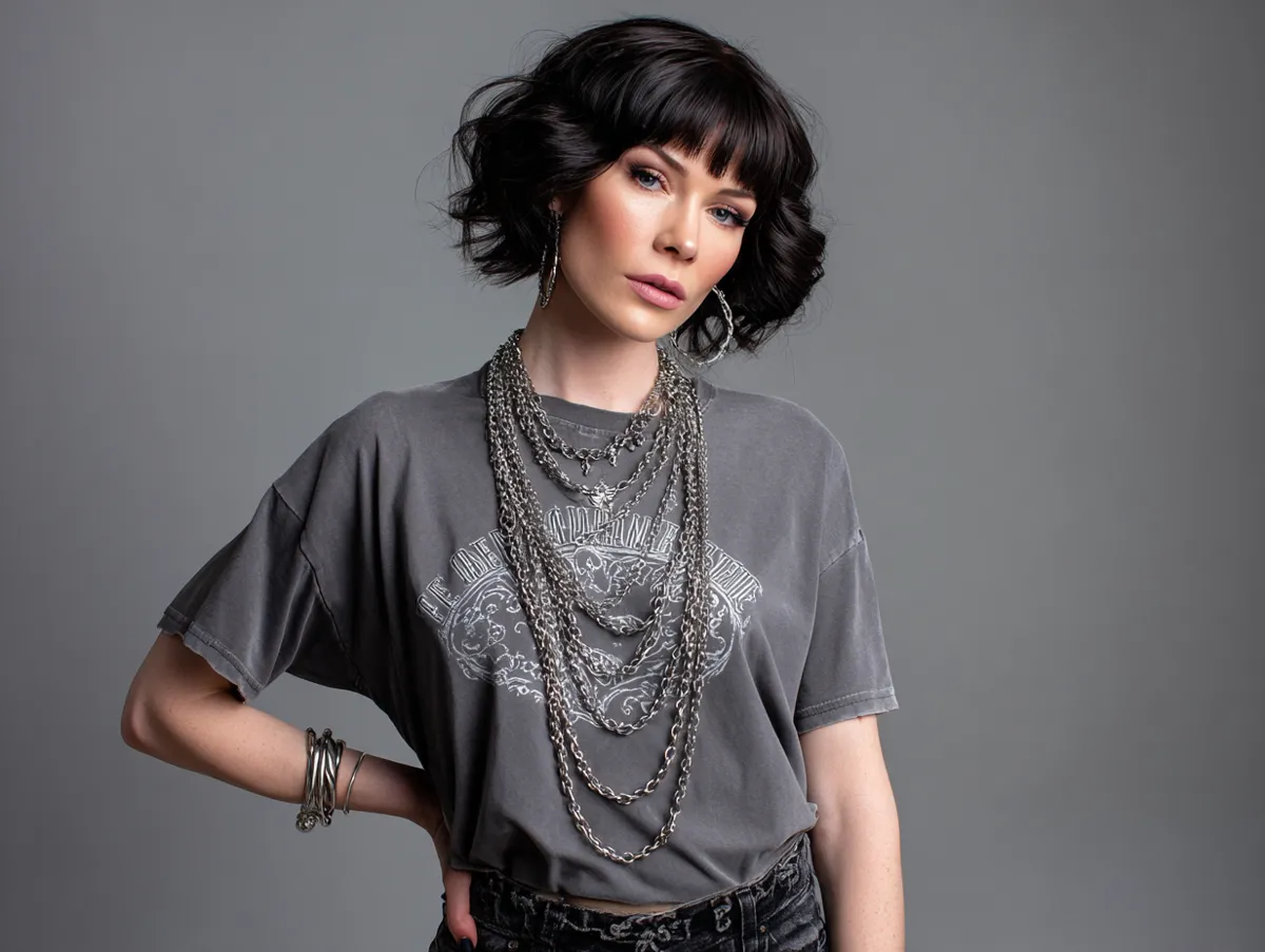 The emotional resonance of this combination lies in how effortlessly it communicates identity. Emo outfit ideas like this one speak of self-awareness and authenticity. They’re not costumes—they’re expressions of rhythm and emotion. Whether you’re attending a local gig or capturing catalog-style photos, the simplicity of a band tee and chains proves that minimalism and emotion can coexist beautifully.