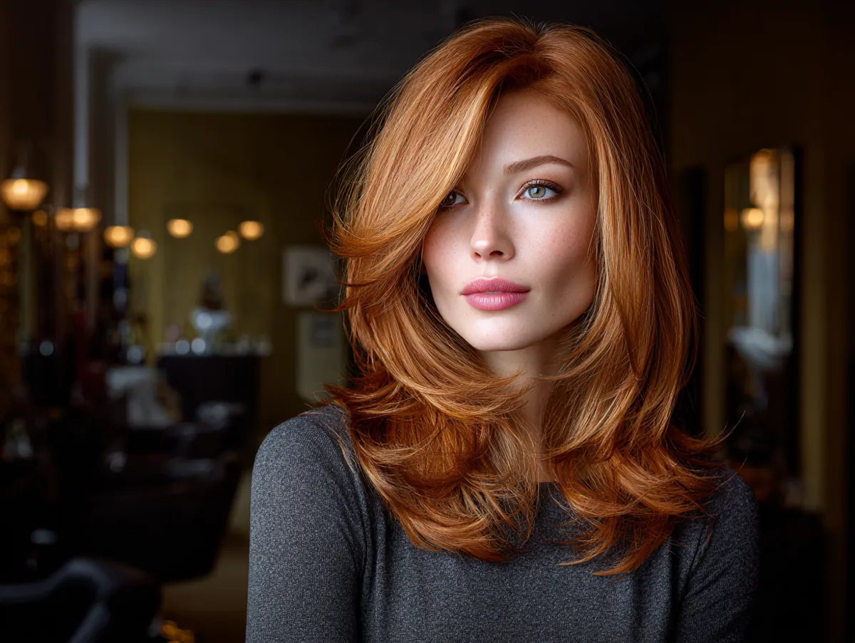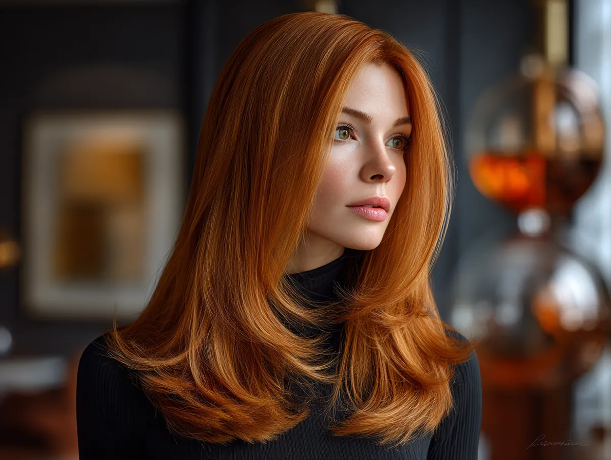 A copper finish suits many skin tones, especially those with warm undertones. In bright daylight, it glows with a natural radiance; under evening lights, it turns luxurious and rich. The style also offers adaptability: whether blow-dried smooth or left slightly tousled, it remains soft and full of life.