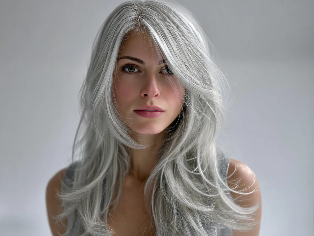Cool platinum shades introduce a futuristic edge that pairs beautifully with lightweight textures. When applying a step cut for long hair in this tone, the stylist plays with the illusion of frost and reflection. Fine strands become light carriers, transforming the whole head into a cascade of glacial shimmer.