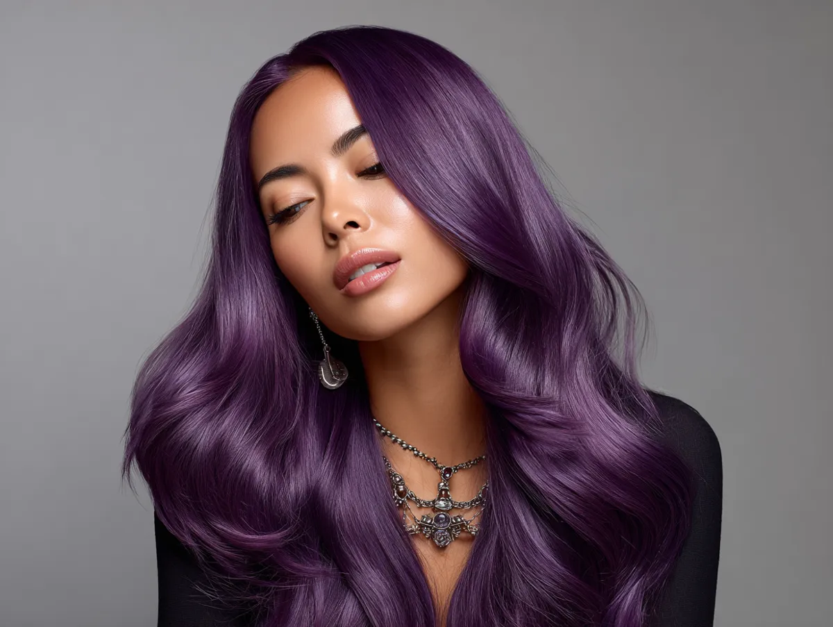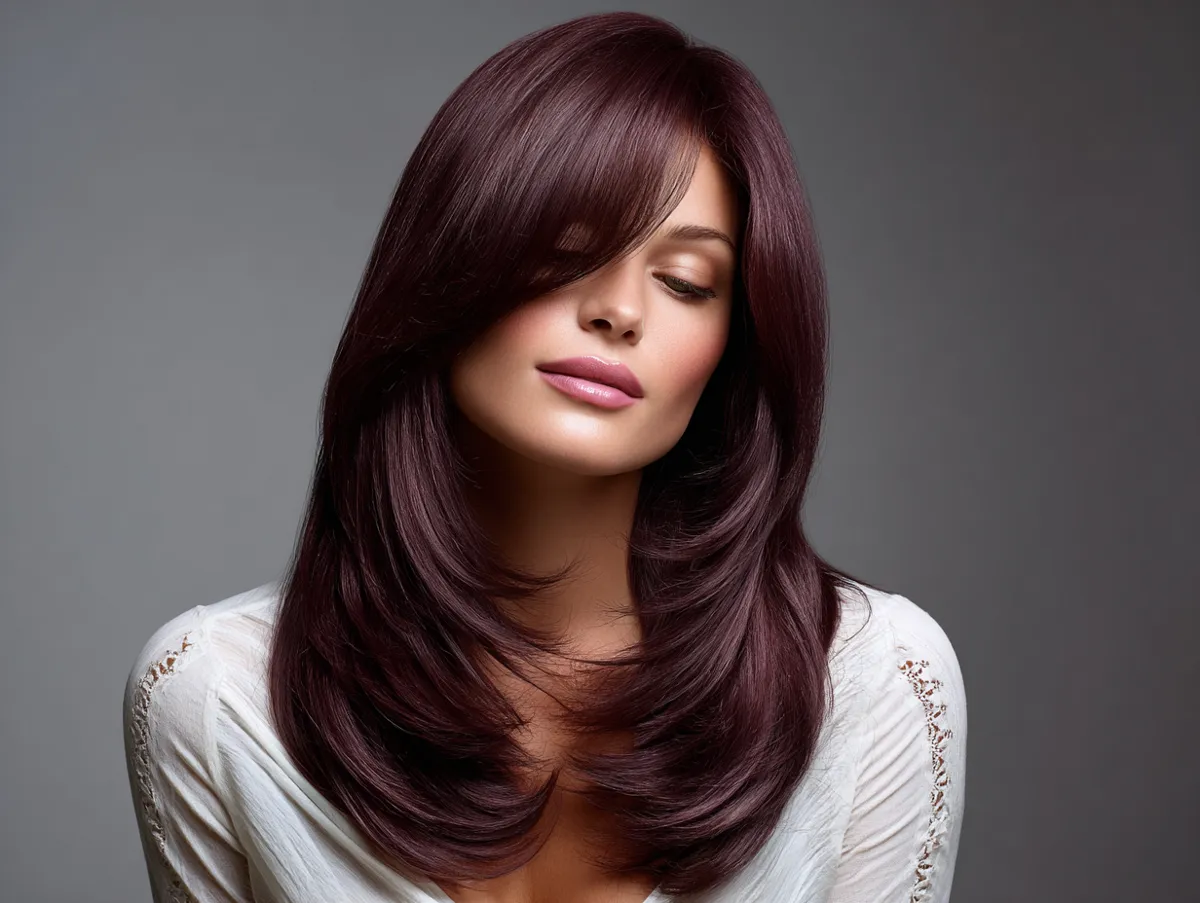 The step cut for long hair adapts to both casual and artistic looks. Pulled into a half-up twist, the amethyst layers shimmer under the sun. Left loose, they flow like silk. This interplay of color and structure enhances self-expression and individuality.
