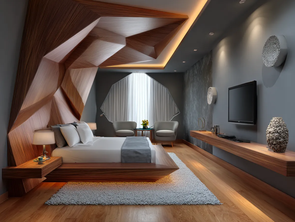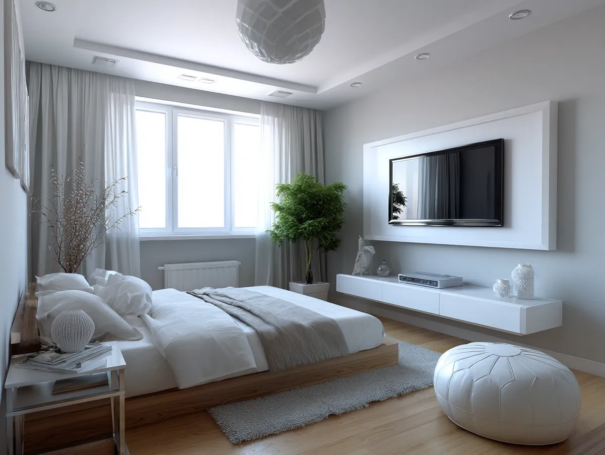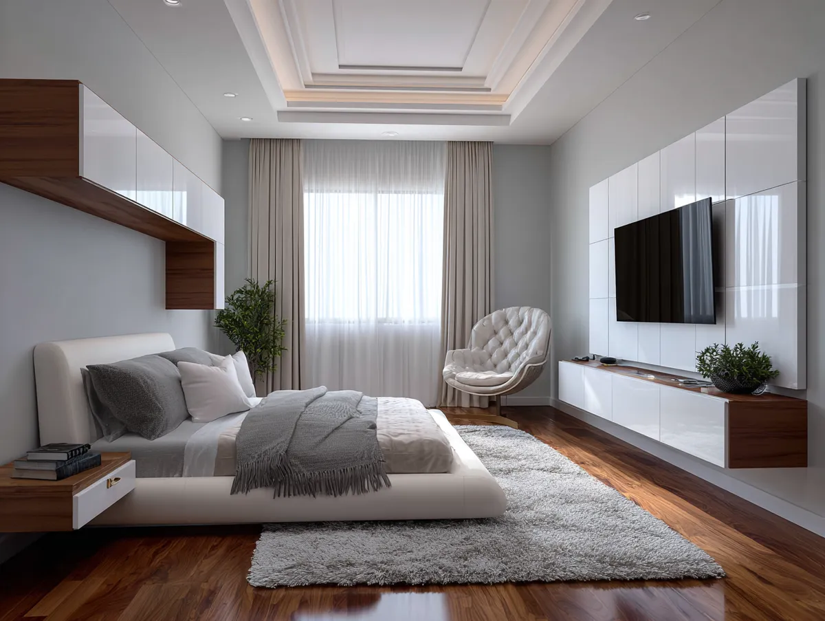 A sleek, minimalist modern TV panel design, like the one featured in our example photo, can add a touch of elegance and sophistication to your bedroom. The clean lines and simple design can create a calming and relaxing atmosphere, perfect for unwinding after a long day. Moreover, a minimalist TV panel design can blend seamlessly with any decor style, making it a versatile choice.
