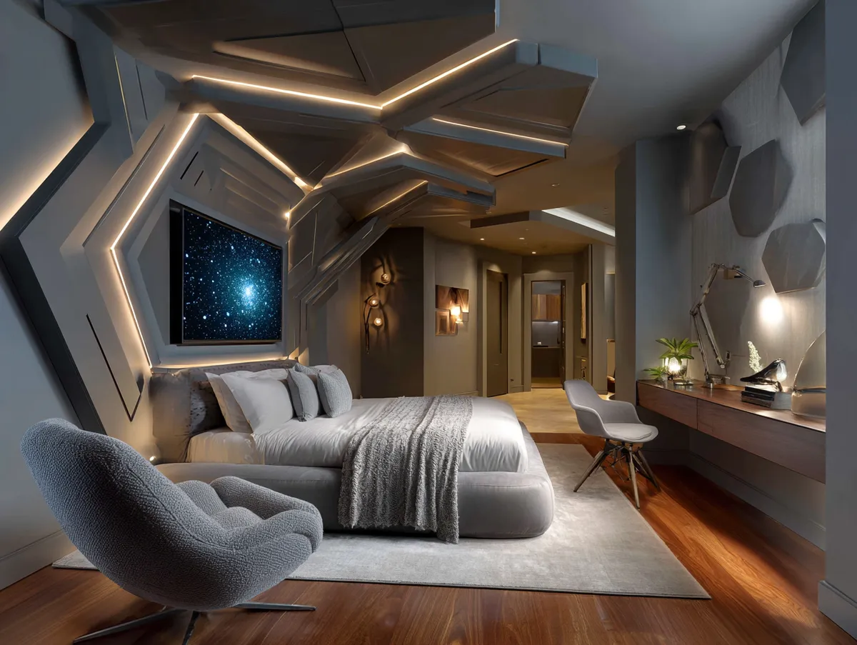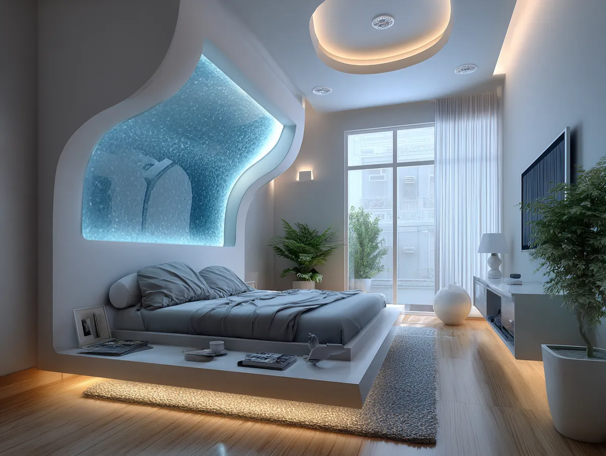 A dynamic backlit modern TV panel design, like the one featured in our example photo, can add a touch of futuristic flair to your bedroom. The backlighting creates a stunning visual effect, transforming the TV panel into a piece of art. Moreover, a backlit TV panel design can create a focal point in your bedroom, drawing the eye and adding a touch of drama.