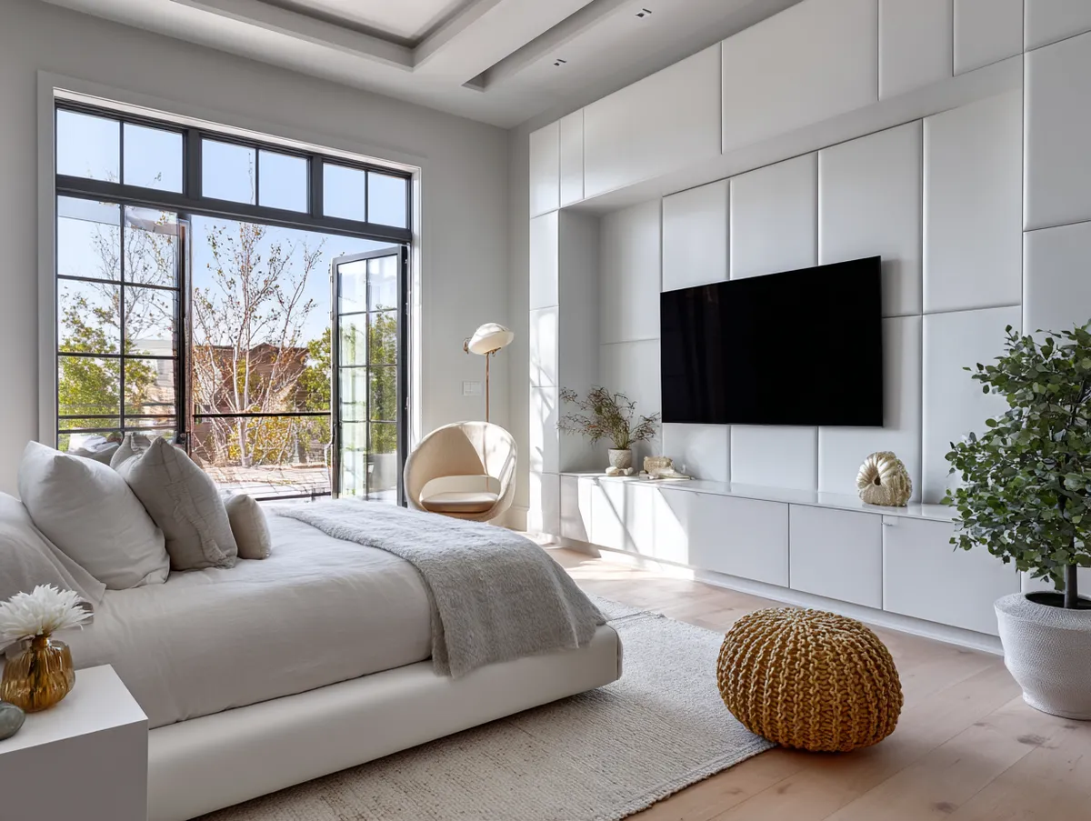 When choosing a sleek, minimalist modern TV panel design for your bedroom, there are a few key factors to consider. First, consider the size of your TV and the wall where you plan to install the panel. The panel should be proportionate to the size of the TV and the wall to create a balanced look.