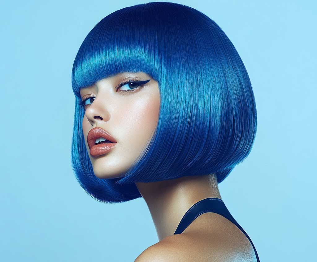 Bright Blue Quick Weave Bob with a Smooth Finish