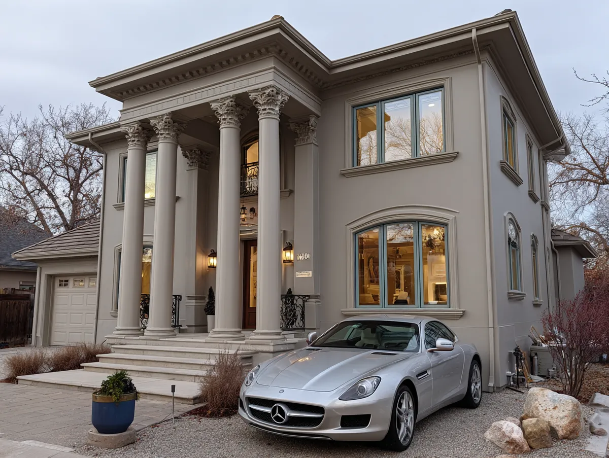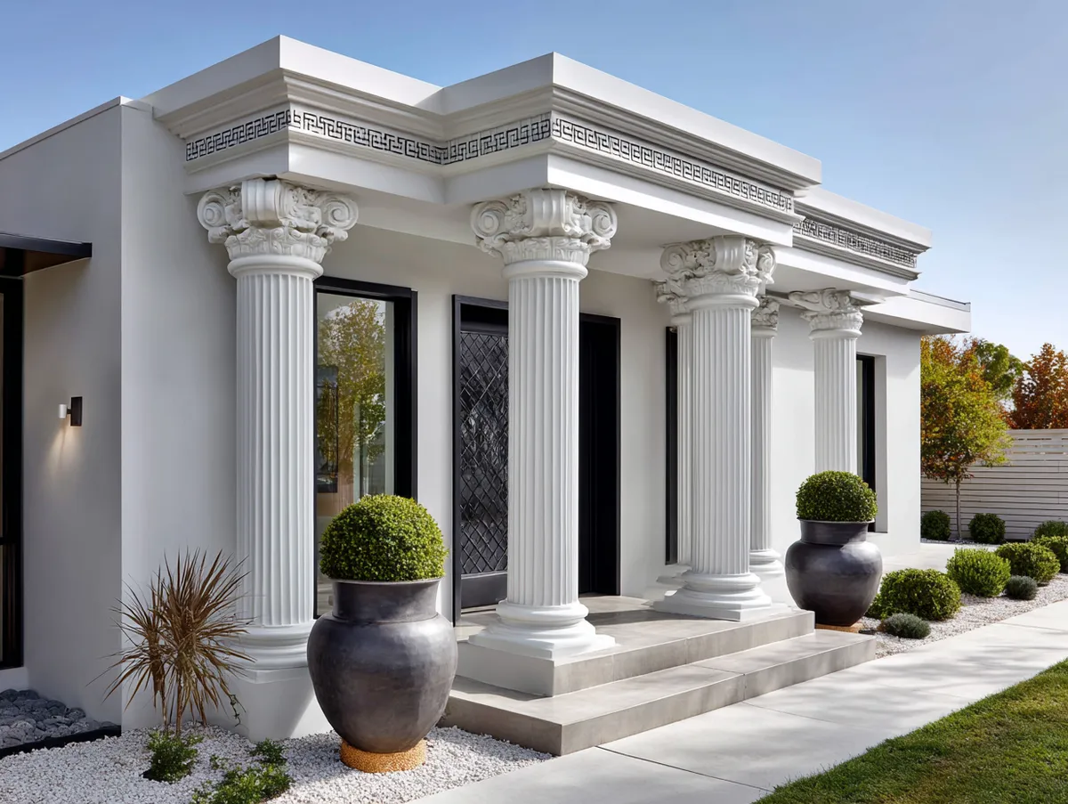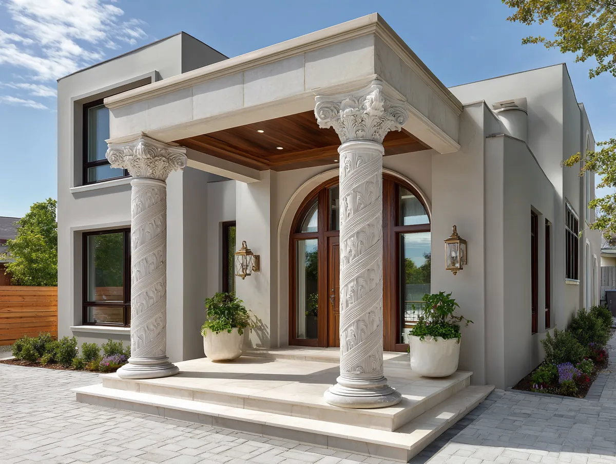 Decorative Roman Columns Enhancing a Modern Home Exterior