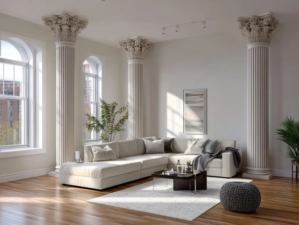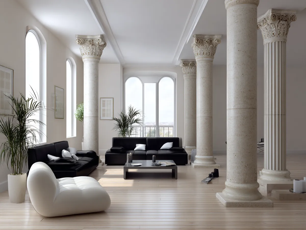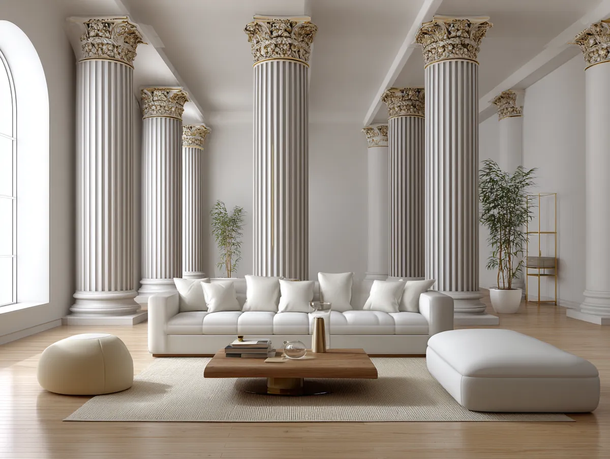 Decorative Roman Columns Adding Grandeur to a Modern Living Room
