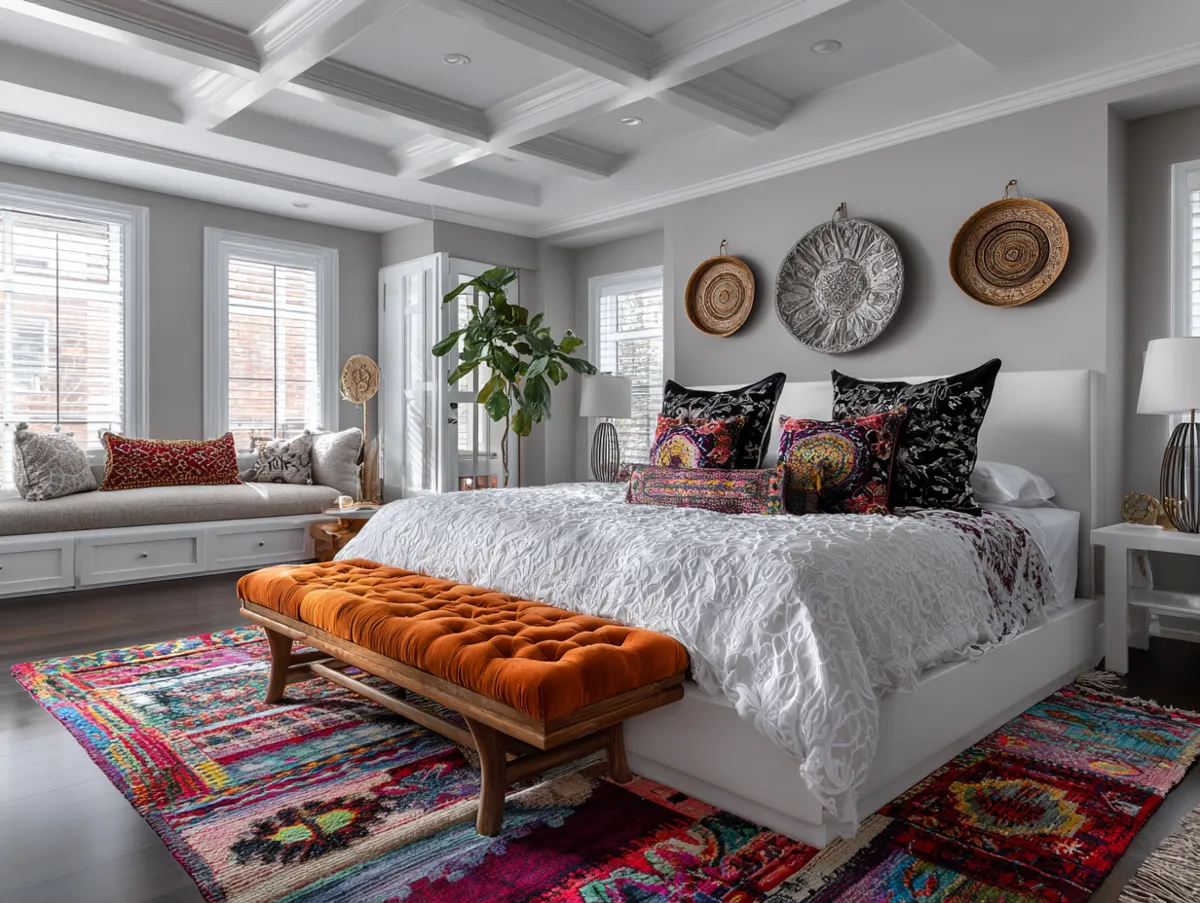 When it comes to furniture, choose pieces with bold and ornate details. For example, you could choose a bed frame with intricate carvings or a dresser with ornate hardware. Additionally, choose decorative accessories with bold accents. For example, you could choose decorative pillows with embroidered details, a lamp with a colorful base, or a mirror with an ornate frame. These bold accents can add a touch of drama and sophistication to your space.