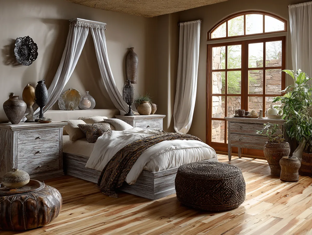 Rustic furniture is a key element of Mediterranean decor and can be incorporated into your bedroom in a variety of ways. Rustic furniture is characterized by its use of natural materials, such as wood and iron, and its distressed or weathered finish. When choosing rustic furniture for your bedroom, consider the size and layout of your space. Choose furniture that fits comfortably in your space and complements the overall design of your home.