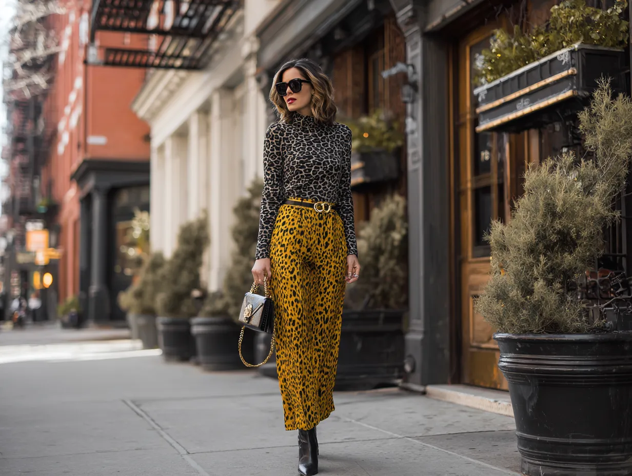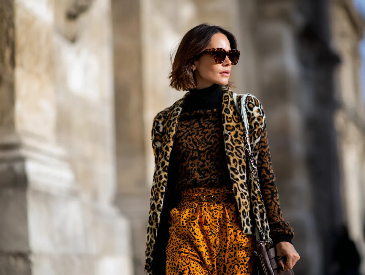 Silhouette plays a massive role in this stylistic equation. When you are combining such loud patterns, the cut of the clothes should be sharp and intentional. A billowy, oversized leopard blouse tucked into sleek, tailored snakeskin trousers creates a silhouette that is both relaxed and rigorous. The volume on top softens the aggression of the print, while the structure of the trousers provides a clean, modern line. This interplay of loose and fitted elements helps to break up the visual density of the patterns. If both pieces were skin-tight, the result might lean too far into costume territory. However, by balancing the fit, you allow the patterns to breathe. The fabric choice is equally important; a silk leopard shirt reflects light differently than a matte leather snake print pant, adding another layer of depth to the outfit. This textual contrast is vital when you are learning the secrets of mixing animal prints for a sophisticated result.