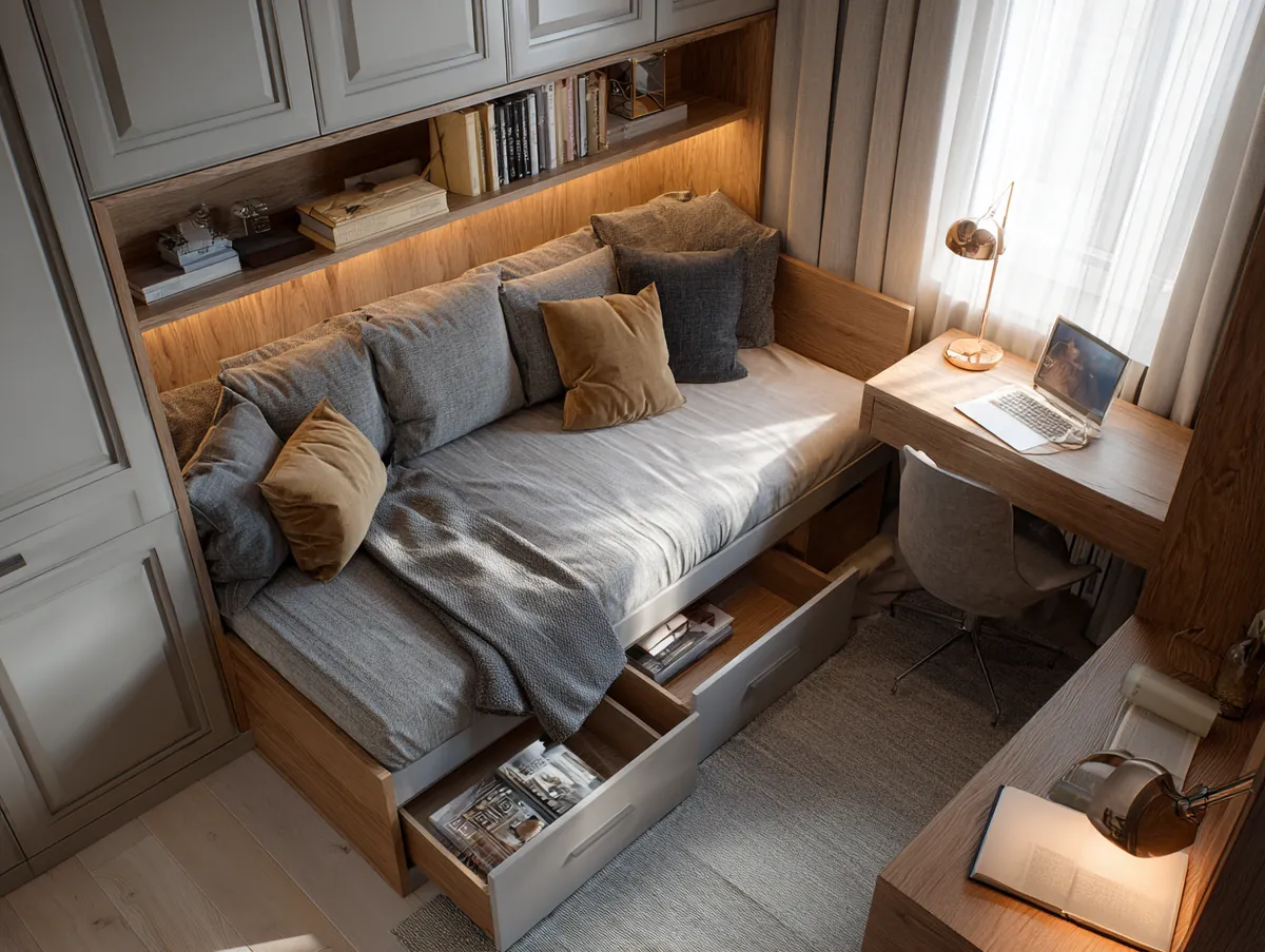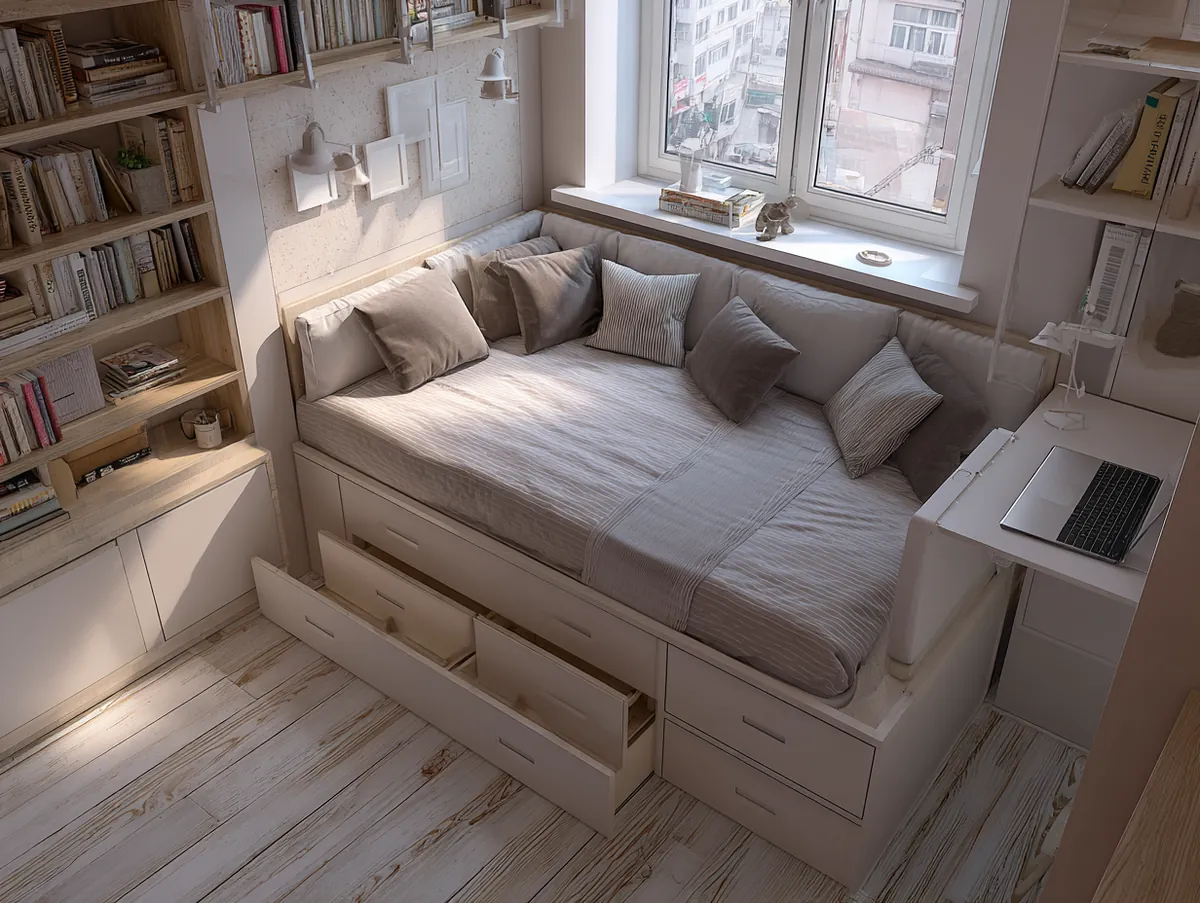The bed, being the largest furniture piece in a bedroom, offers significant storage potential. Beds with built-in drawers or storage compartments underneath are a godsend for small spaces. These hidden compartments can store bedding, clothes, or even books, ensuring the room remains clutter-free.