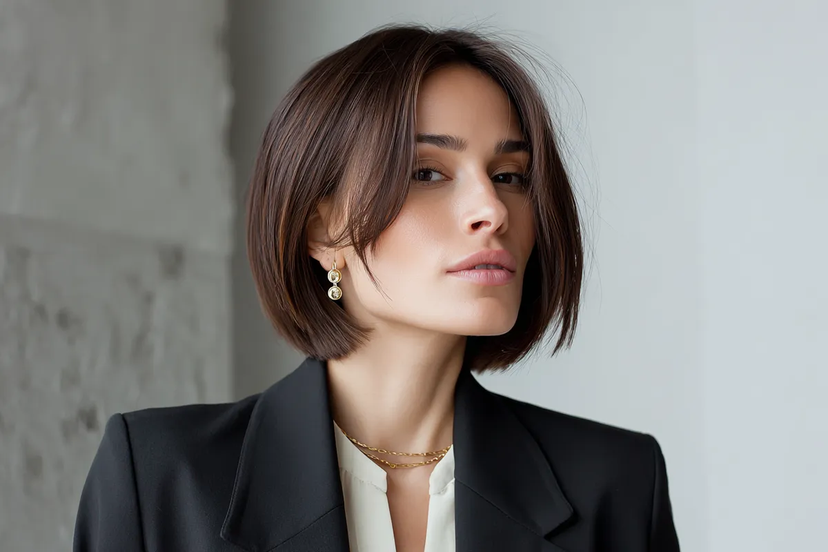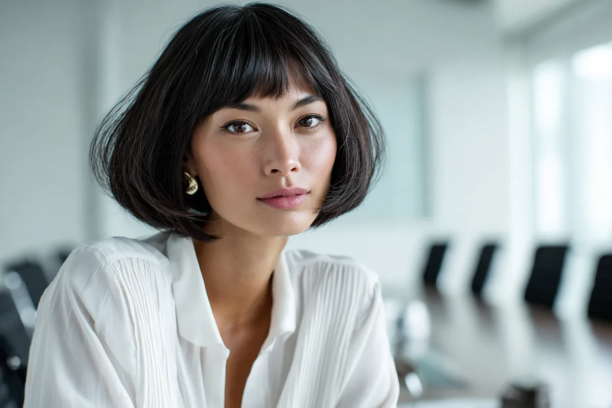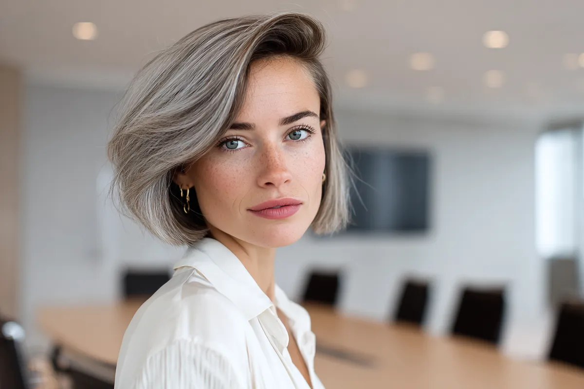 Graduated bob haircut with side part for confident meetings