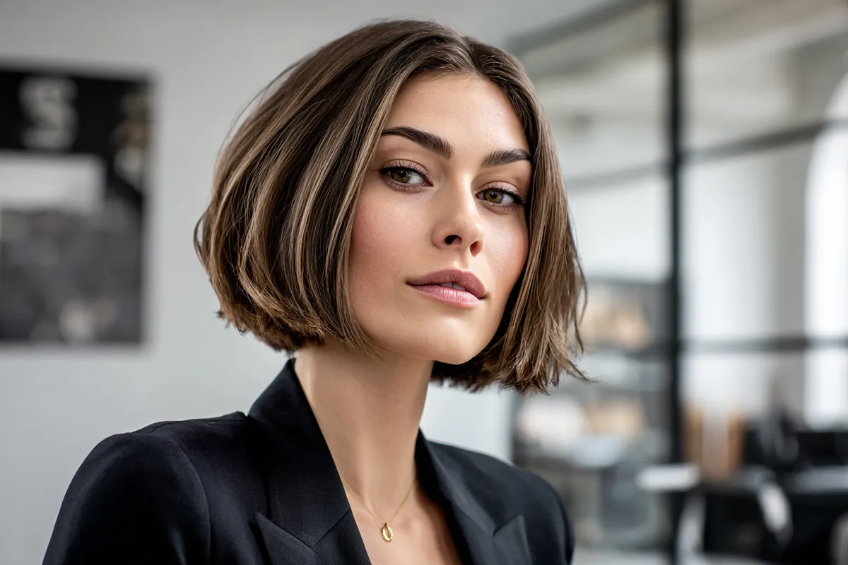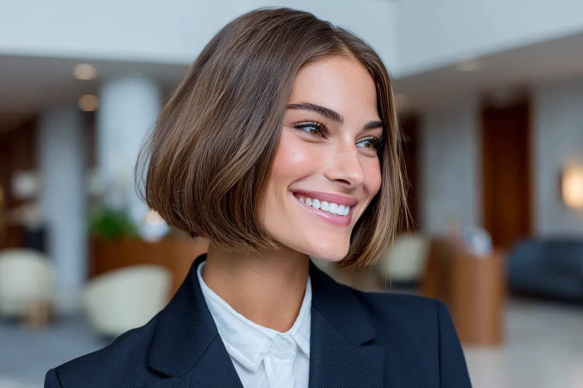 Graduated bob haircut with smooth layers for professional interviews