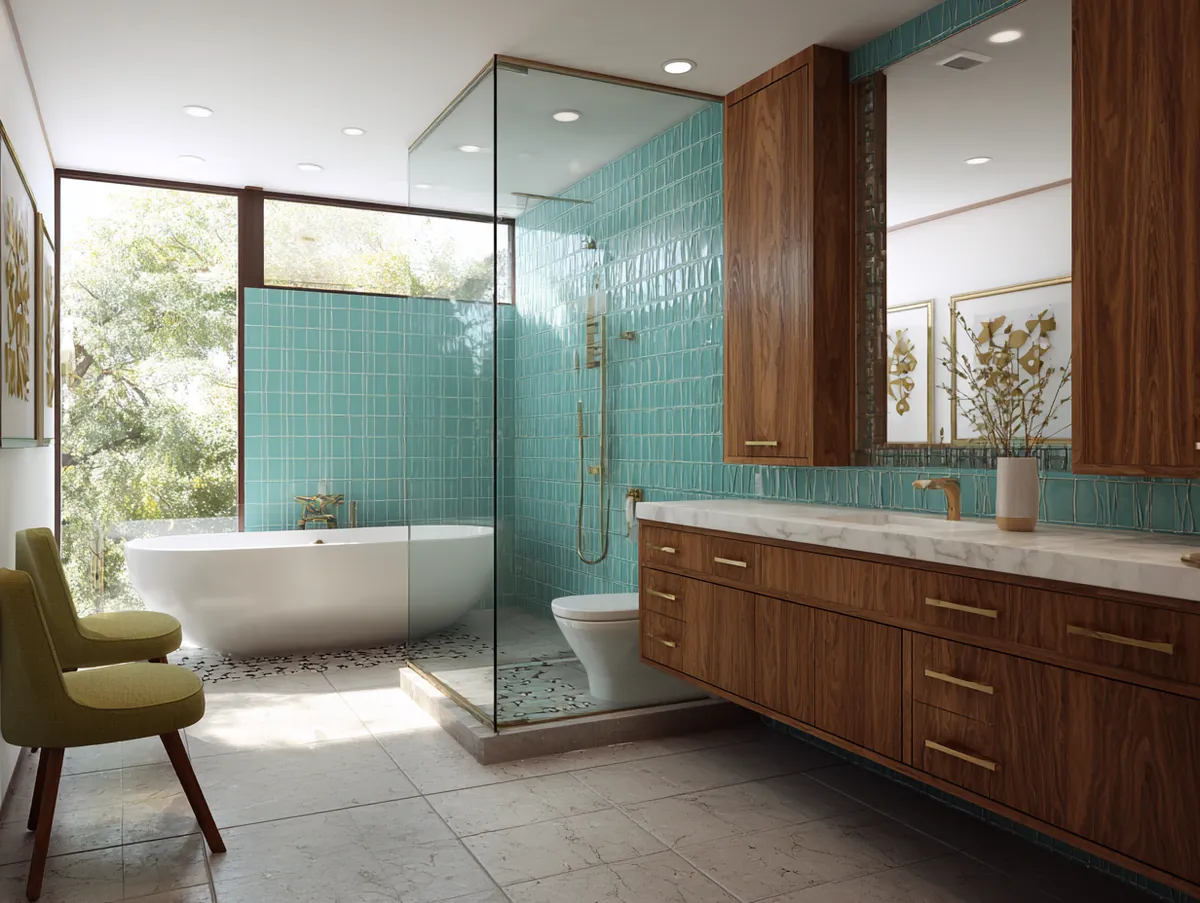When selecting fixtures and accessories for your bathroom, choose pieces with simple lines and minimal ornamentation. A streamlined faucet or a simple towel rack will help create the sleek, minimalist look that is characteristic of midcentury modern design.