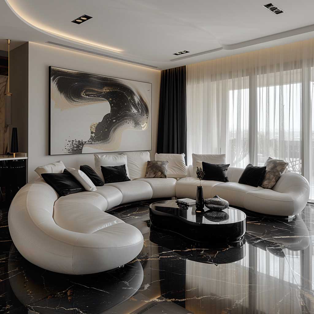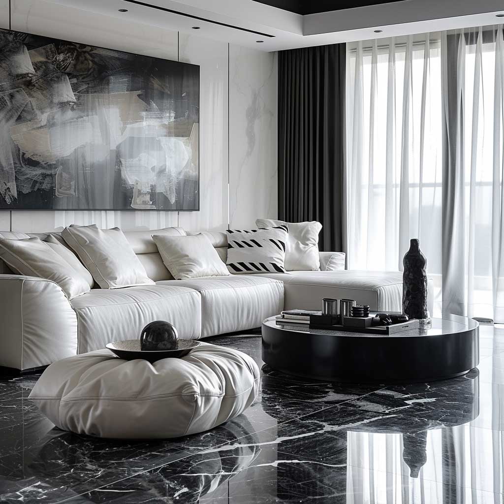 As the curtains opened, natural light flowed into the room and revealed every touch of softness and coolness on the hard marble floor, down to the fibers of the sofa. The artificial lighting in the room will give it a transformation as it will show up shadows and highlights that make the room be lively and dynamic. At different times of the day, the interplay of light and texture will affect the perception of the inhabitant in the space. The home interiors of black and white are so much more than merely visually impactful; they’re timeless and endlessly sophisticated, welcoming somehow holding their appealing appeal and class. This design decision speaks to those who appreciate clarity and simplicity in their living environment. This proves that with a minimalist approach, also some warmth and accessible impression can be acquired.
