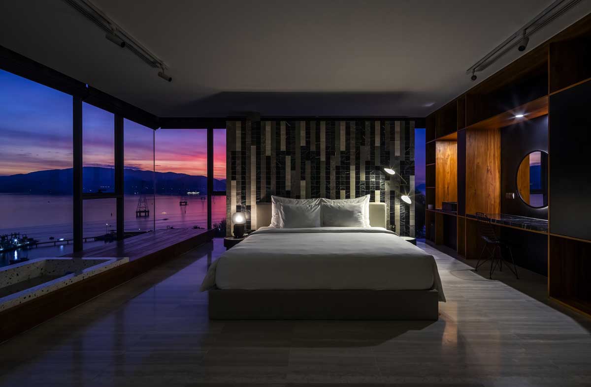 One of the key design goals of the Sky Villa was to maximize the beauty of the scenery. This goal was achieved through the use of large floor-to-ceiling windows in the bedrooms, which fully immerse the rooms in the scenery.