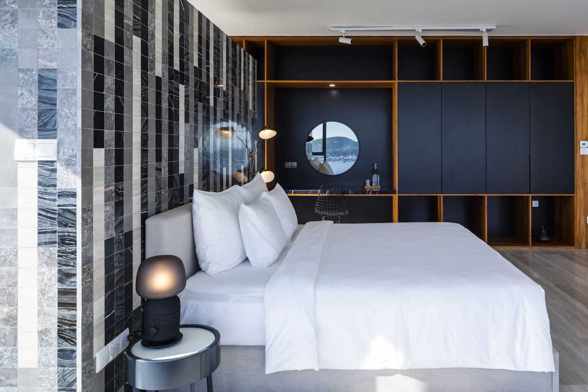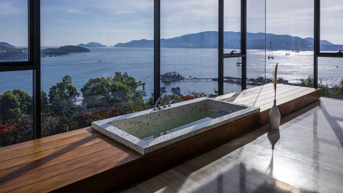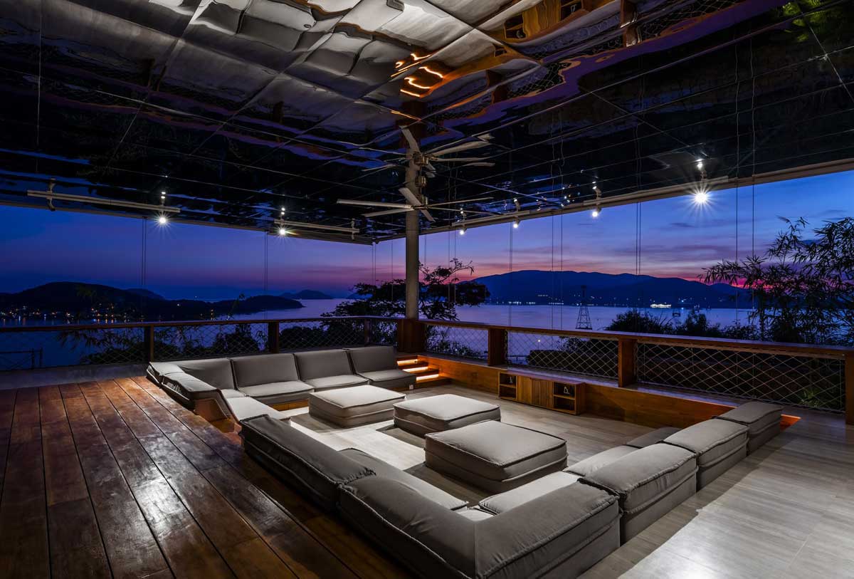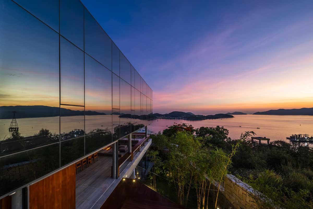 Finally, the villa’s location, carved into the hill, allows it to enjoy a unique ocean view, overlooking the bay and mountains in the background. This location shows how mirrored houses can take full advantage of their environment to maximize the beauty of the scenery.