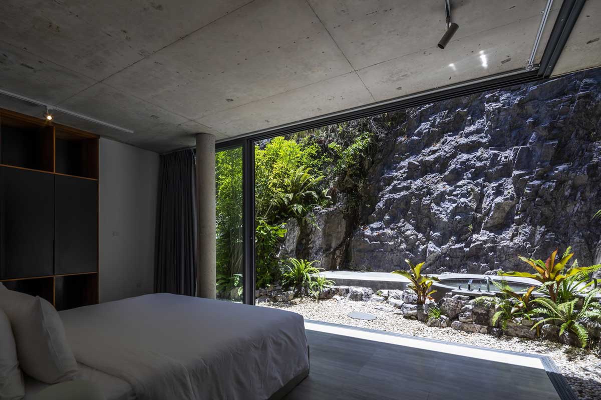 The bathrooms in the villa are also open, separated from the bedroom with a partition wall. This design feature allows the inhabitants to enjoy the beauty of the scenery even when they are in the bathroom.
