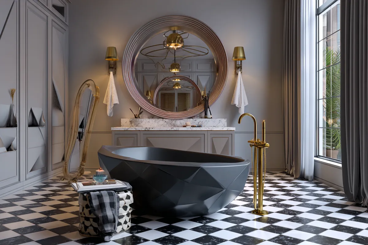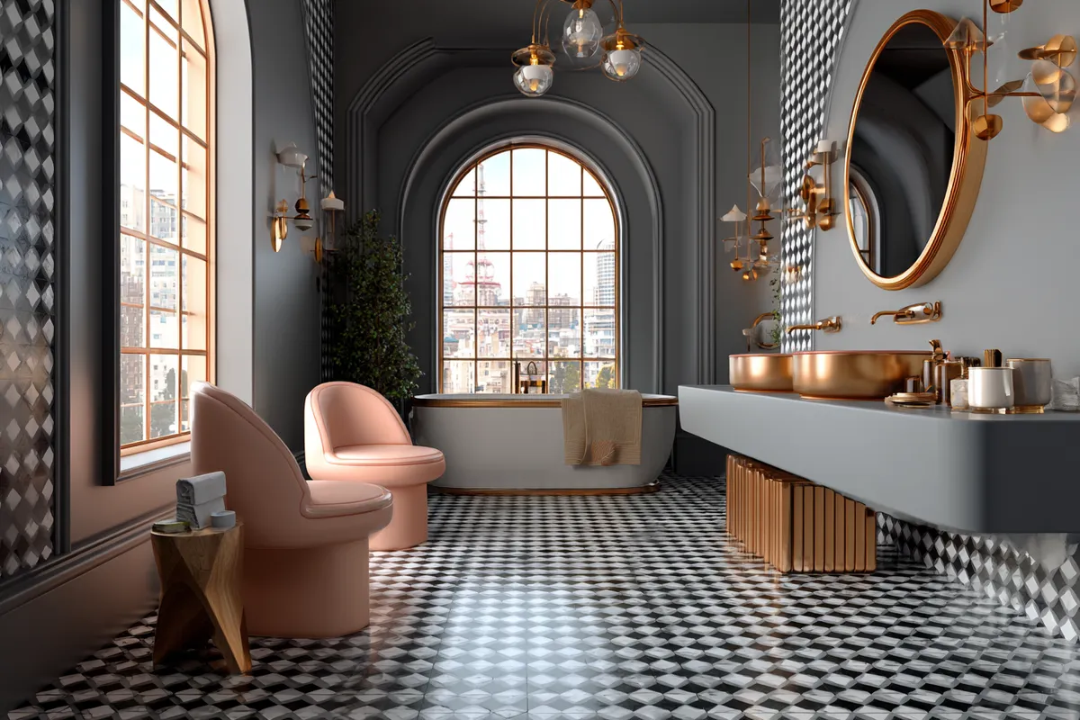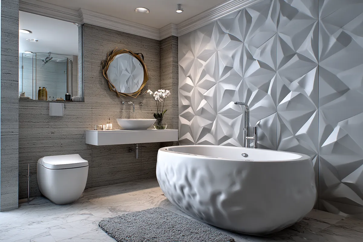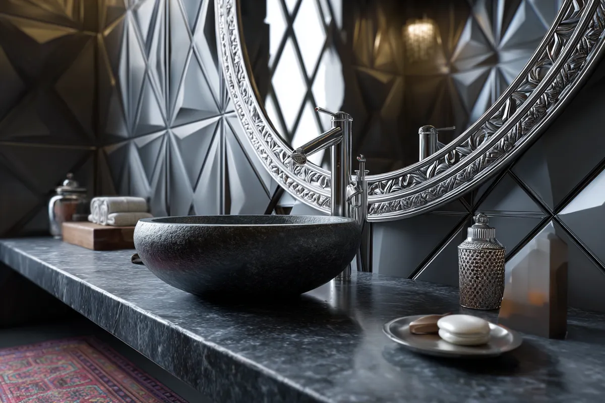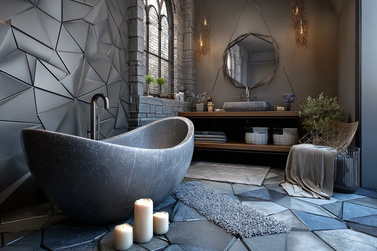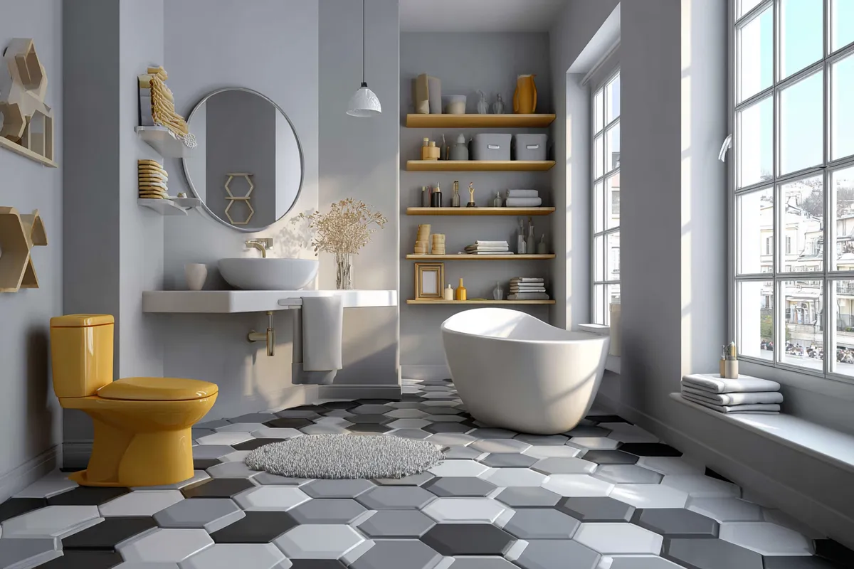 Venture into the realm of inventive design with our feature on geometric bathroom ideas. This image illustrates the innovative integration of geometric patterns and shapes in a bathroom, creating a space that marries functionality with aesthetic appeal.